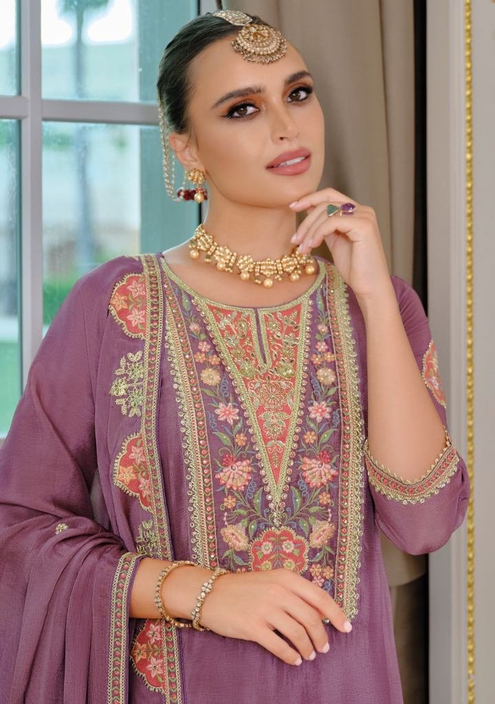 Today Presenting Palazzo Suit heavy Chinon With Embroidery work