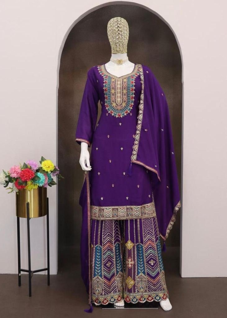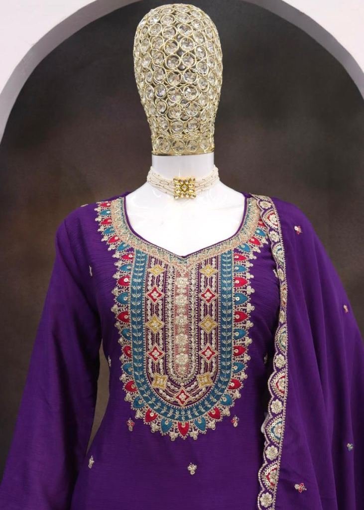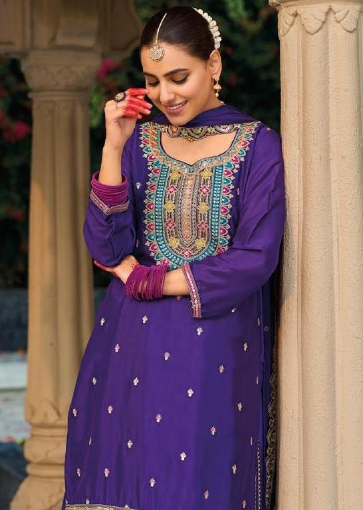 | NAME : | Eba Lifestyle Mohini Palazzo Suits Heavy Chinon With Embroidery Multi And 5 mm Mat Sequence Work Purple Color DN 1806 |