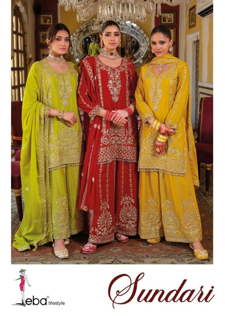 Eba Lifestyle Sundari Designer Chinon Embroidered Readymade Suit Collection