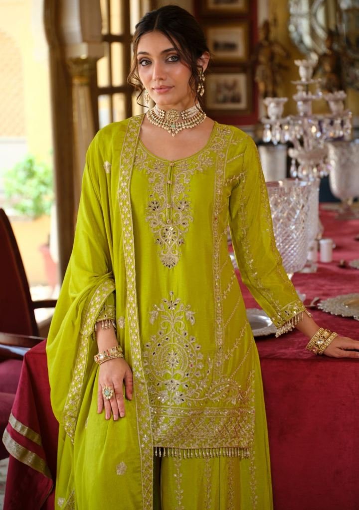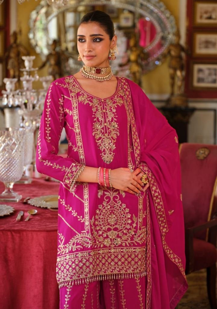 Today Presenting heavy Chinon Palazzo Suit with embroidery work