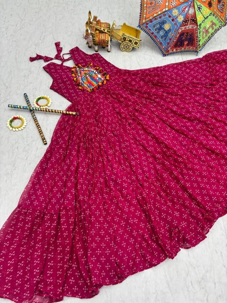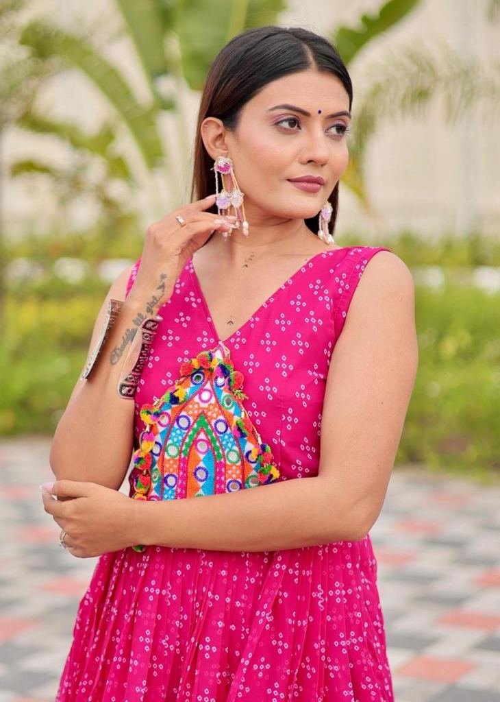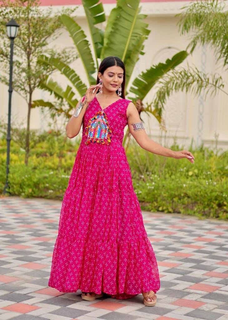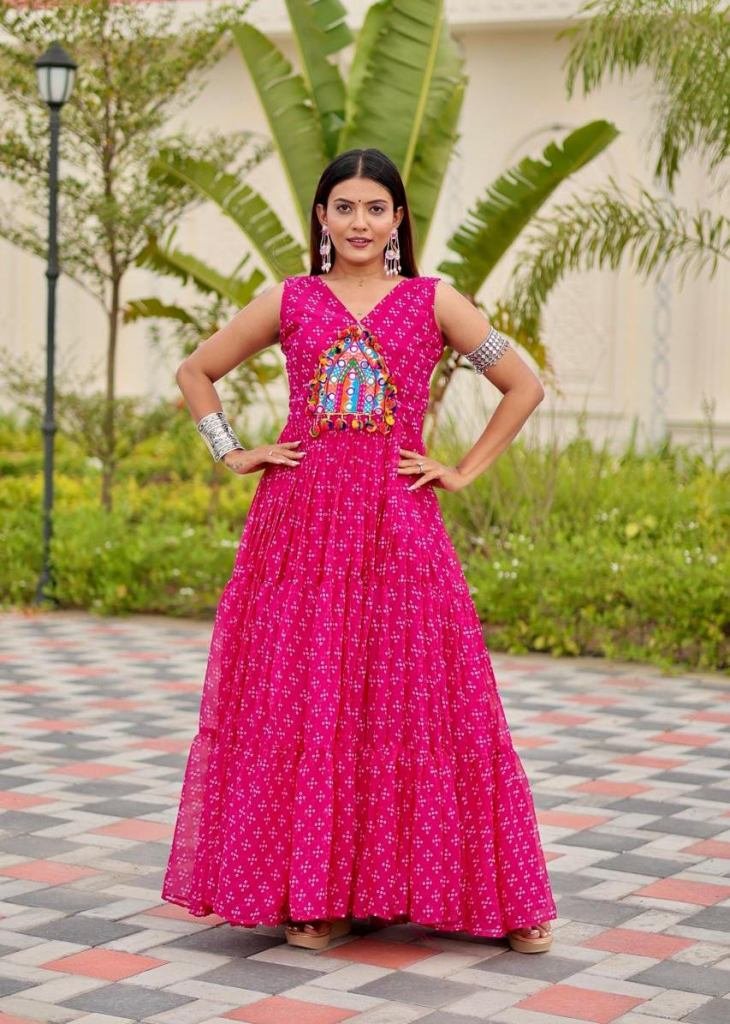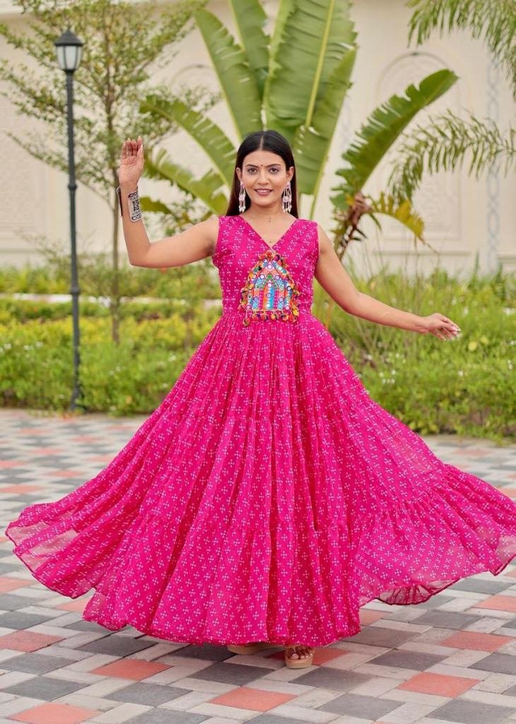 Exclusive Navratri Faux Georgette Embroidery Thread Work And Real Mirror With Repayment Lace Gown Pink Color DM 128