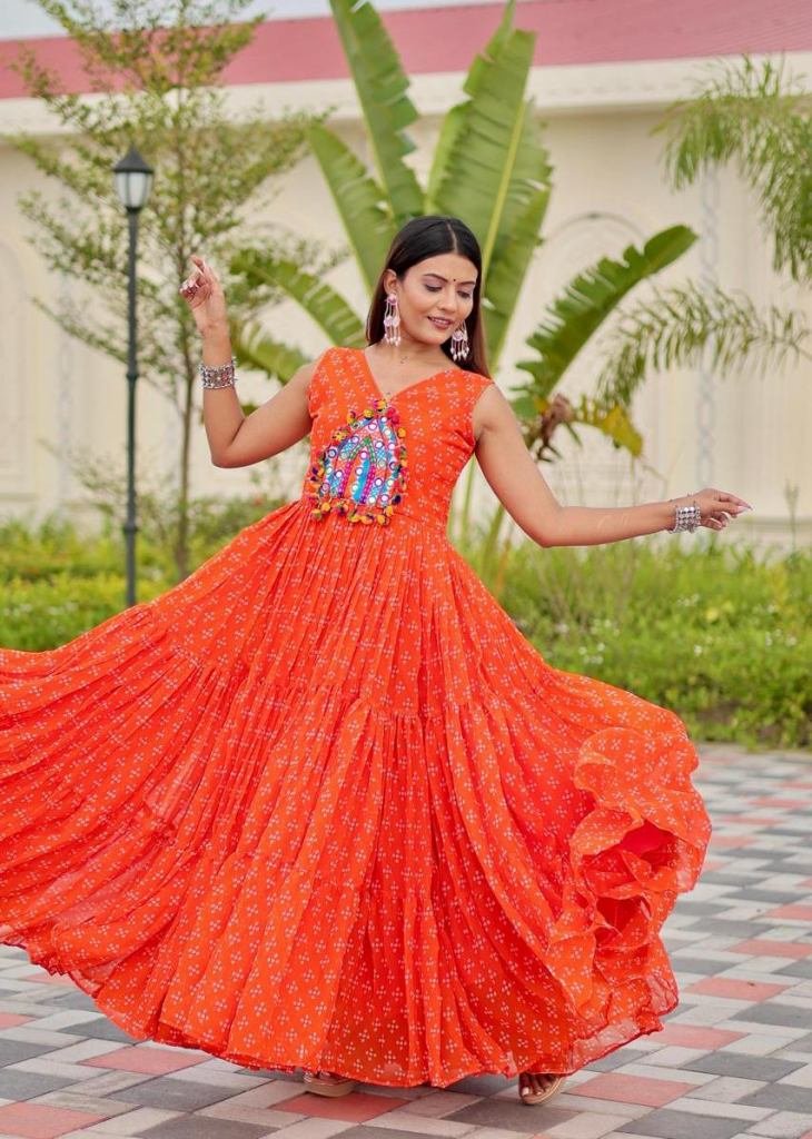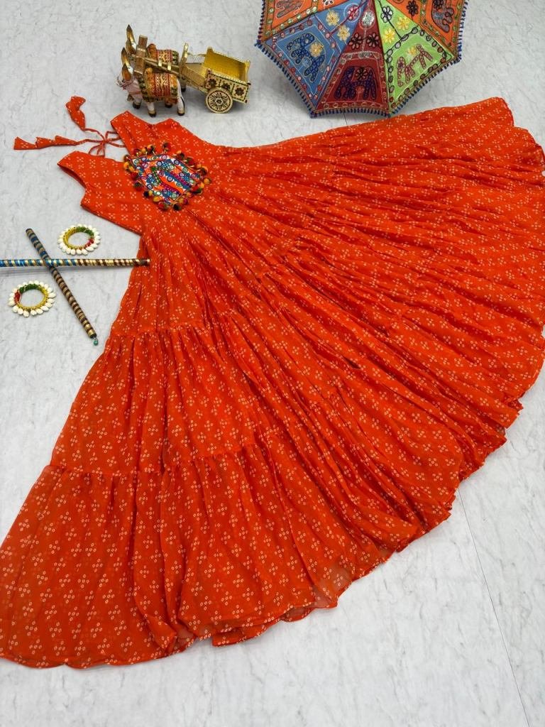 NAME : | Exclusive Navratri Faux Georgette Embroidery Thread Work And Real Mirror With Repayment Lace Gown Red Color DM 128 |