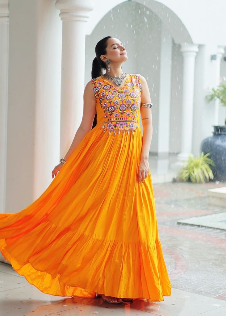 | NAME : | Exclusive Navratri Gown Reyon Kutchi With Gamthi And Embroidered With Mirror Work Yellow Color Gown DN 9258 |