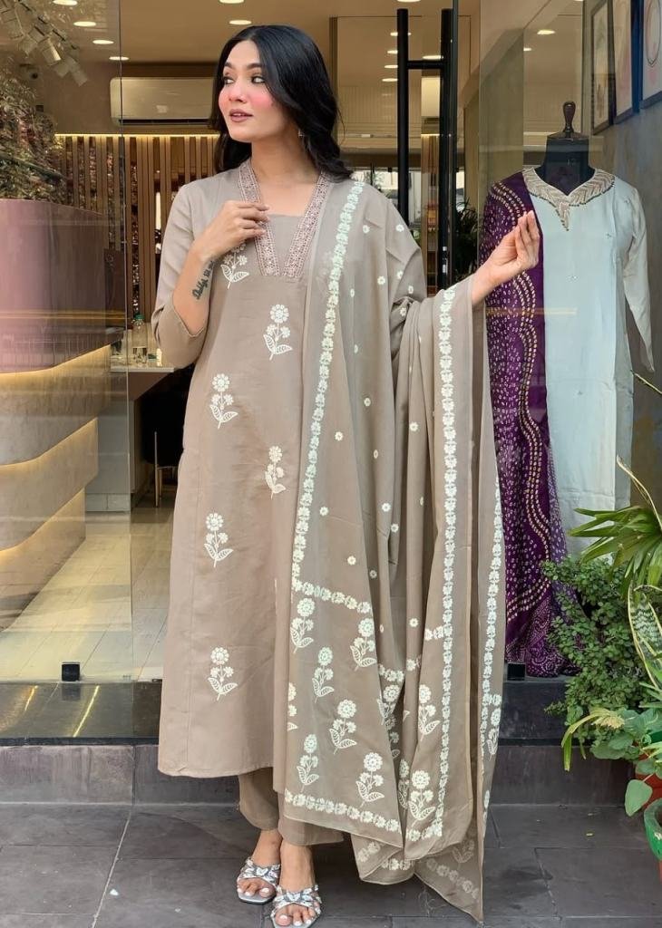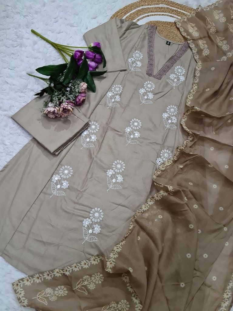 NAME : | Exclusive Tanvi Cotton Blend And Sequence With Embroidery Work 3 pieces Kurtis Set Grey Color |