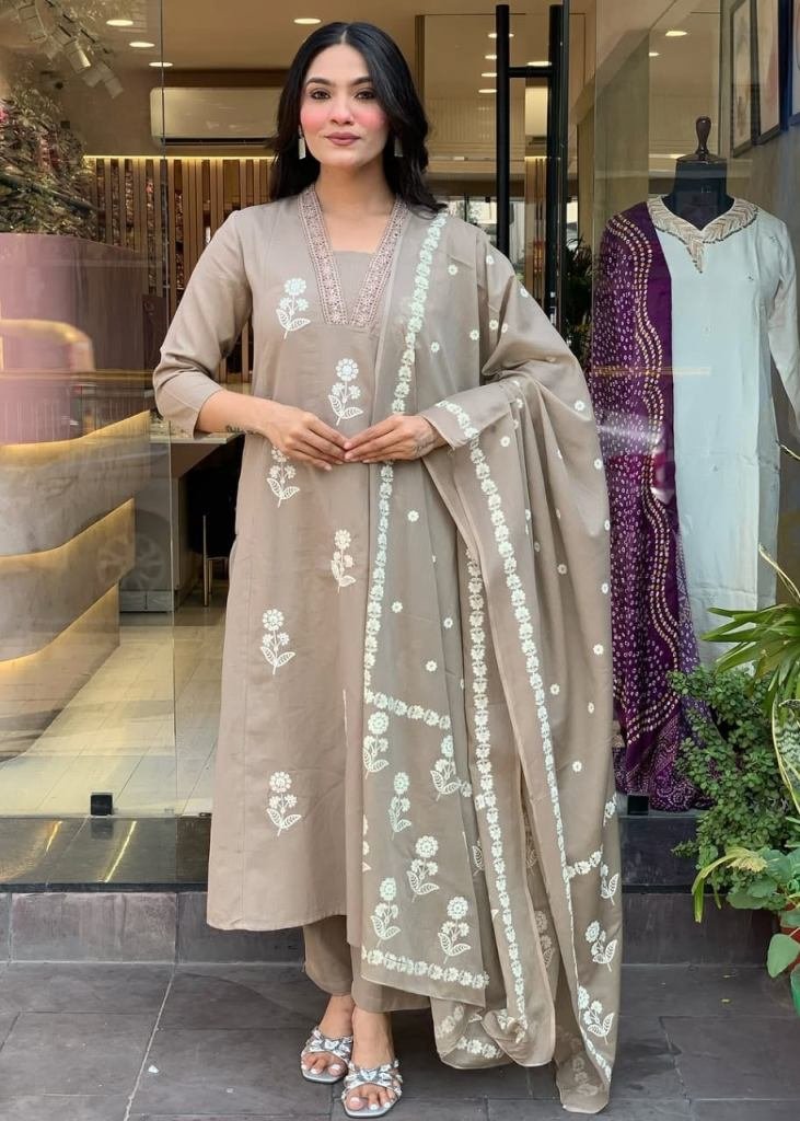 Exclusive Tanvi Cotton Blend And Sequence With Embroidery Work 3 pieces Kurtis Set Grey Color