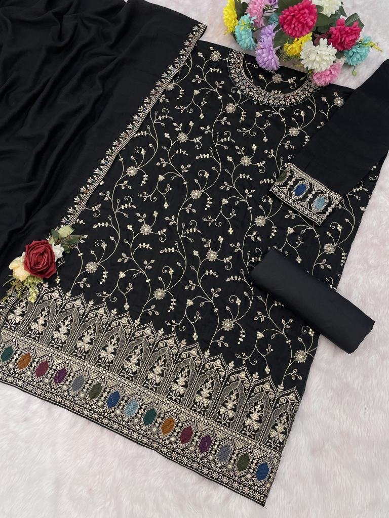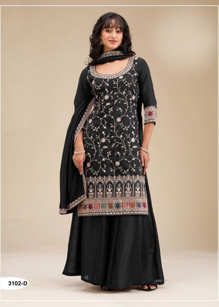 | NAME : | Fancy Blooming Vichitra With Heavy Embroidery Work And Sequence Work Palazzo Suit Black Color DN 3102 |