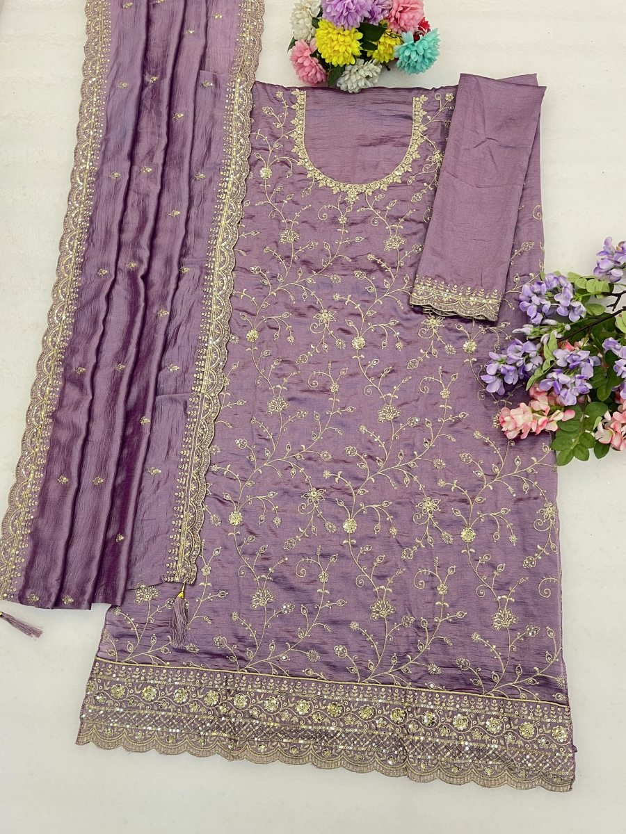 | NAME : | Fancy Designer DN 3109 Vichitra Silk With Heavy Embroidery Work Pant Style Designer Suit Lavender Color |