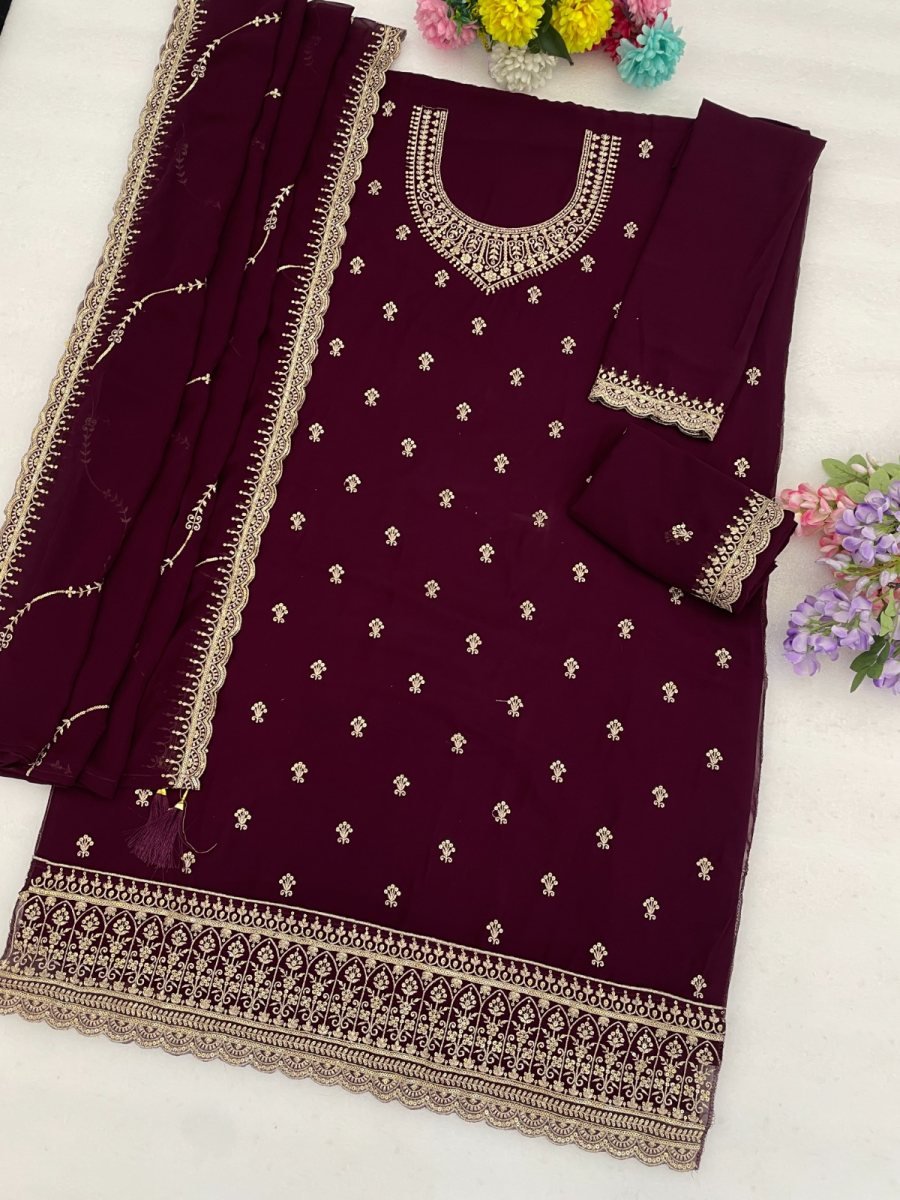 | NAME : | Fancy Designer DN 3111 Blooming Faux Georgette With Heavy Embroidery Work Palazzo Suit Purple Color |