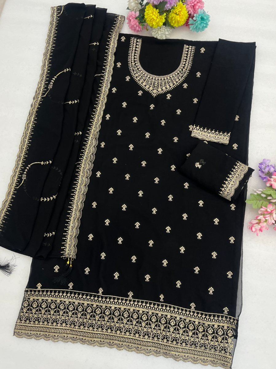 | NAME : | Fancy Designer DN 3111 Blooming Faux Georgette With Heavy Embroidery Work Palazzo Suit Black Color |