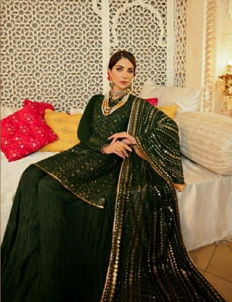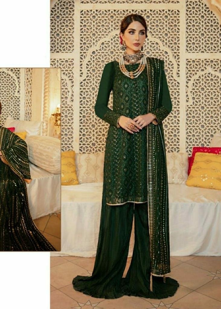 | NAME : | Fancy Designer Georgette With Heavy Embroidery Work Pakistani Suit Bottle Green Color R DN 437 |