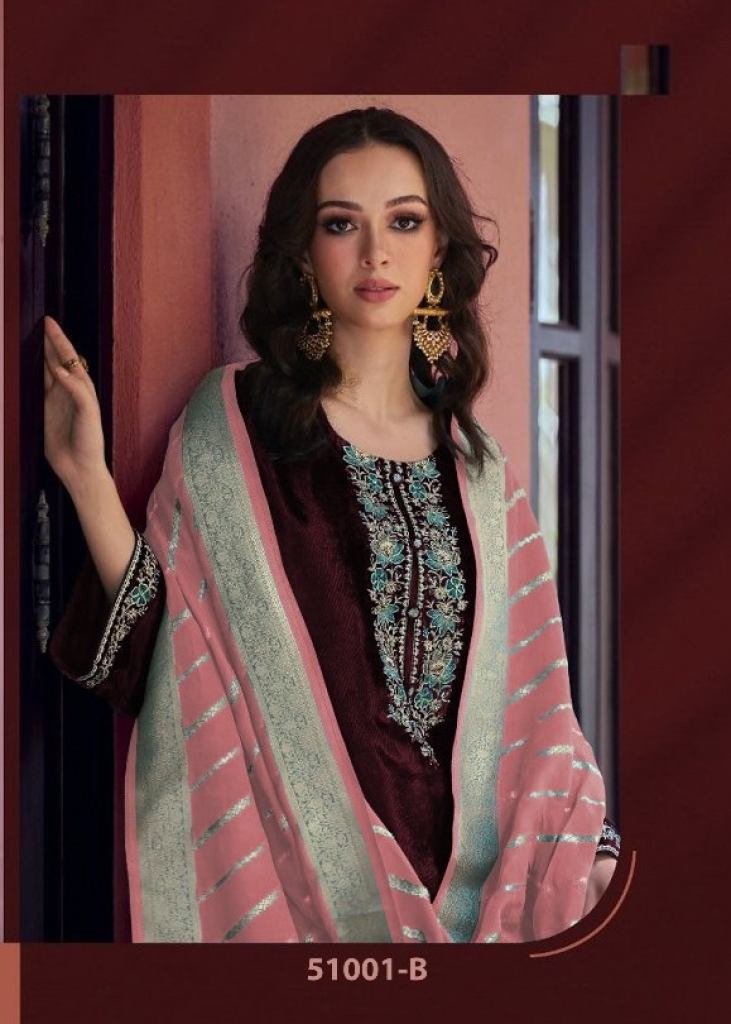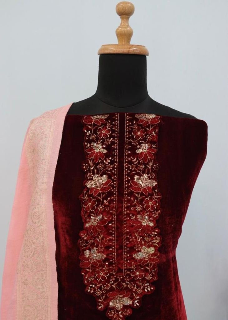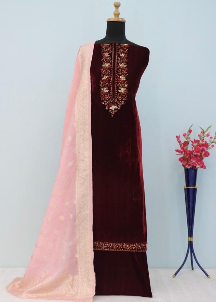 | NAME : | Fancy Velvet Suit With Embroidery Sequence Work Maroon Color DN 51001 |