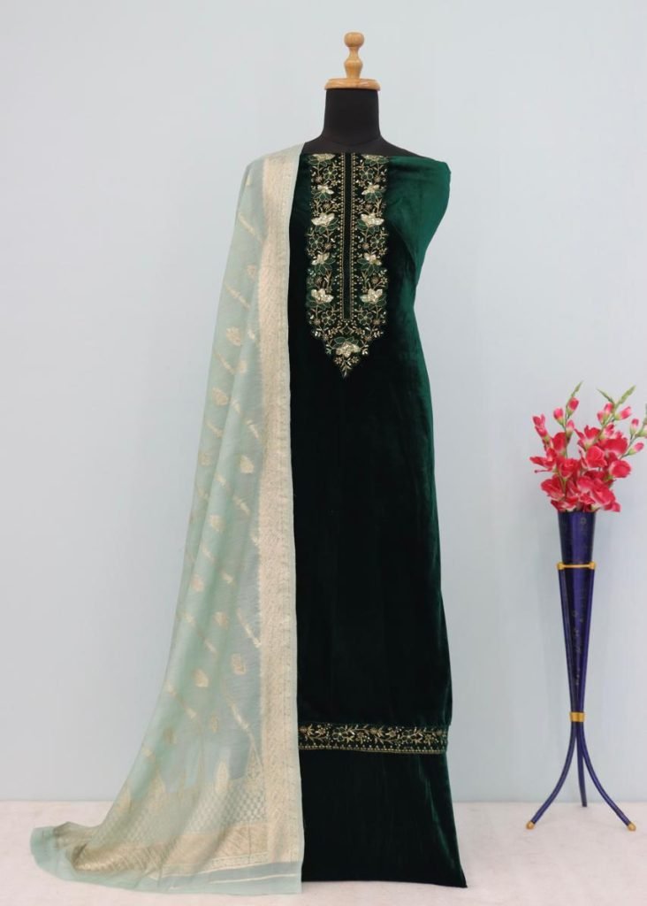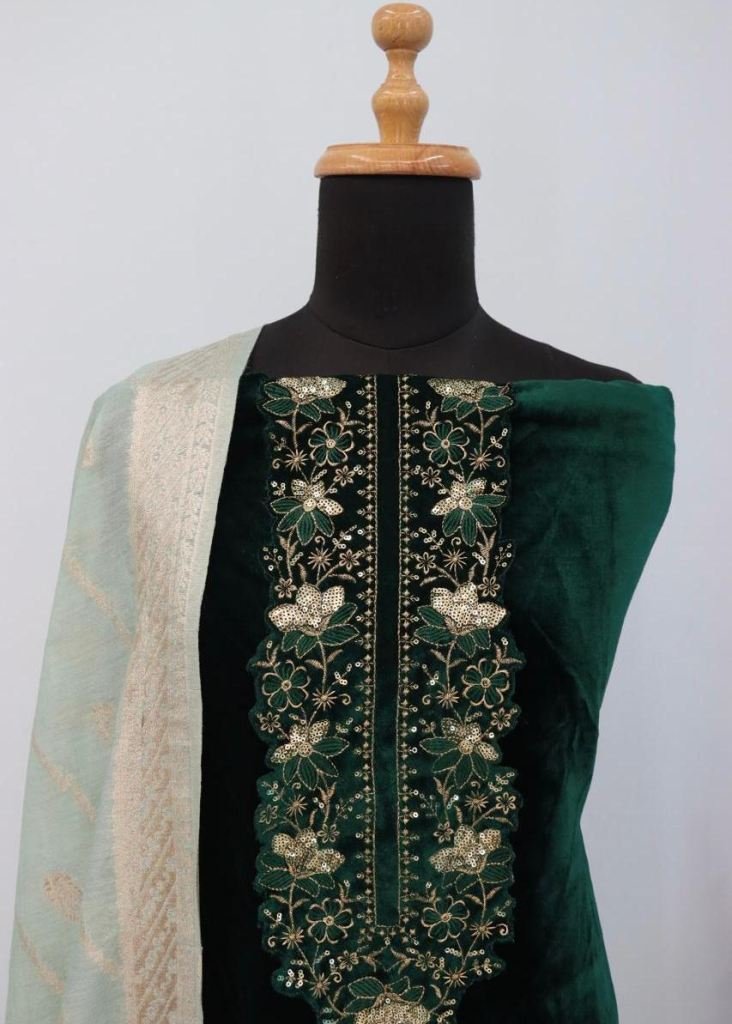 | NAME : | Fancy Velvet Suit With Embroidery Sequence Work Green Color DN 51001 |