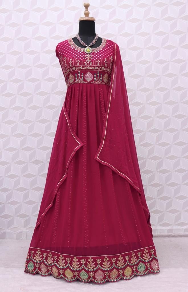 NAME : | Fiona Sachi Heavy Faux Georgette With Embroidered Anarkali Suit Red Color DN 51012 |