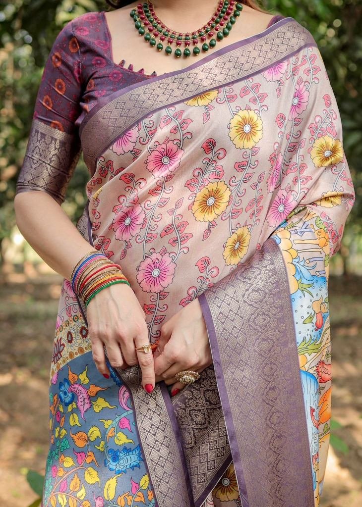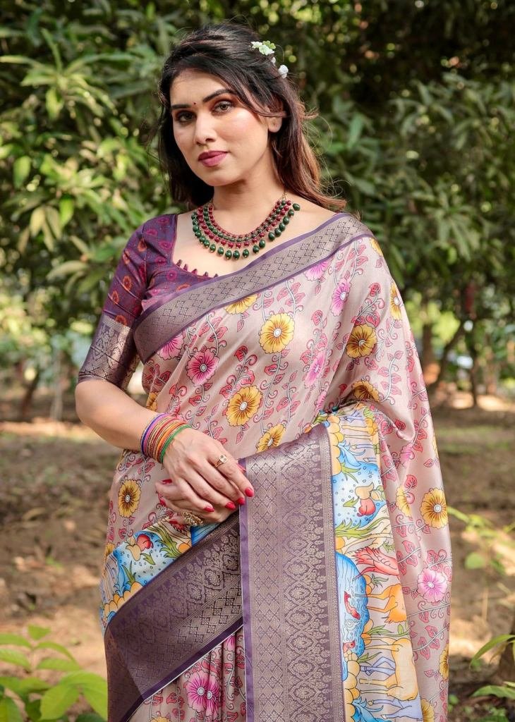 Color : Pastel Beige & Lilac with an elegant Lavender Zari Border