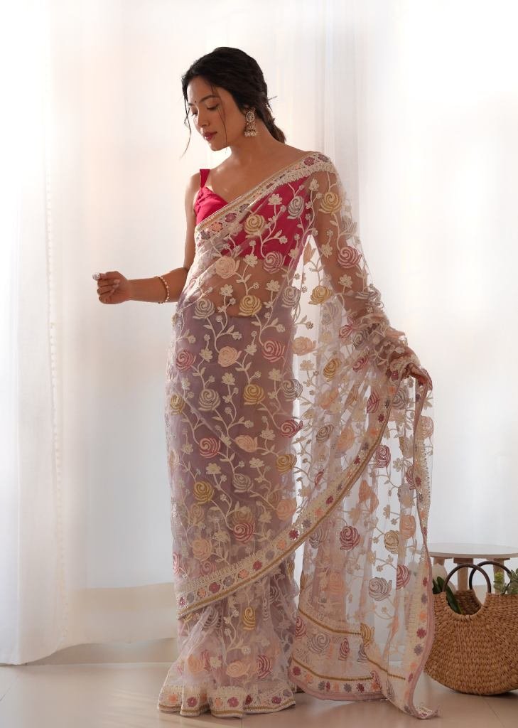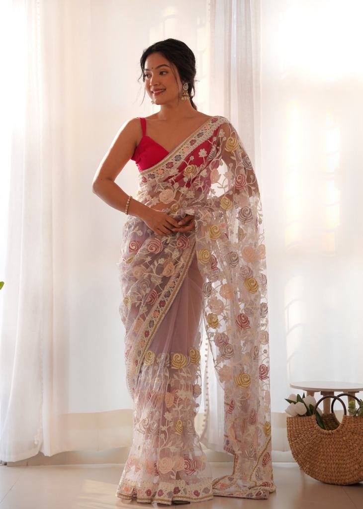 Gulabo Most Beautiful Latest Saree Collection Heavy Butterfly Net With Real Modelling Lavender Color