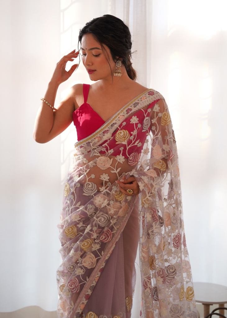 NAME : | Gulabo Most Beautiful Latest Saree Collection Heavy Butterfly Net With Real Modelling Lavender Color |