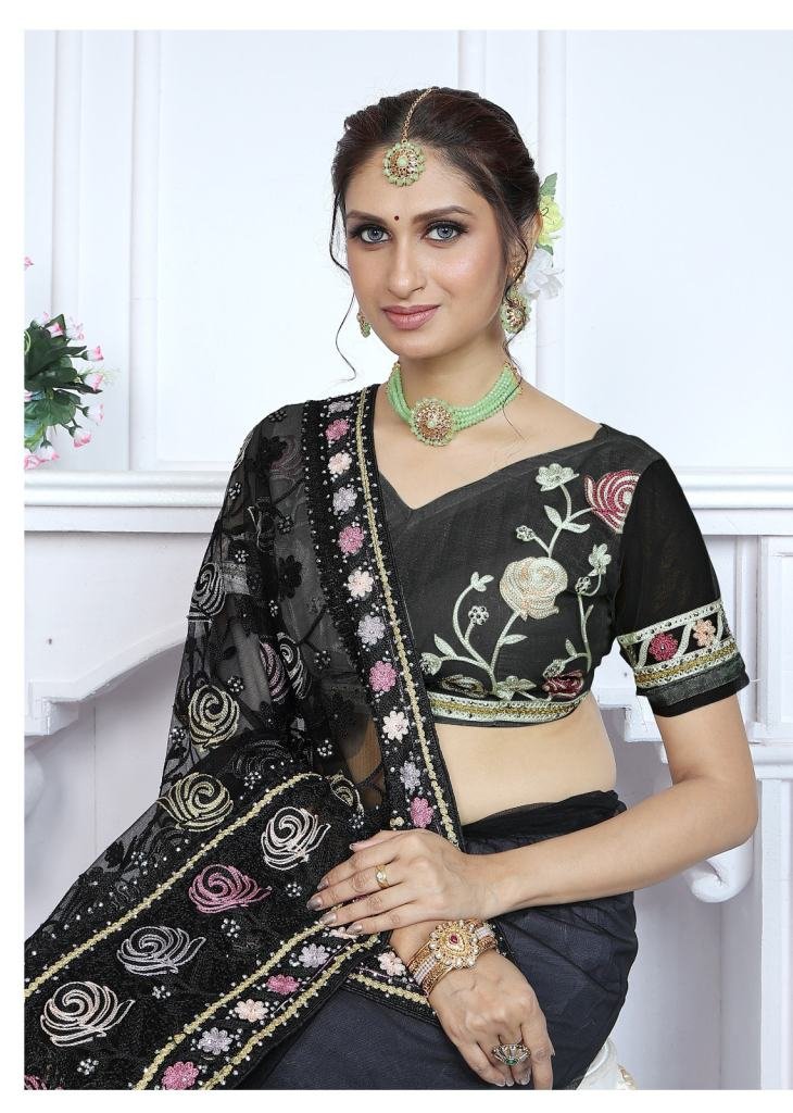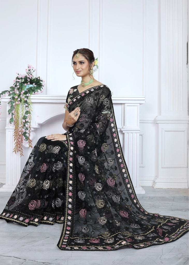 Gulabo Most Beautiful Latest Saree Collection Heavy Butterfly Net With Real Modelling Black Color