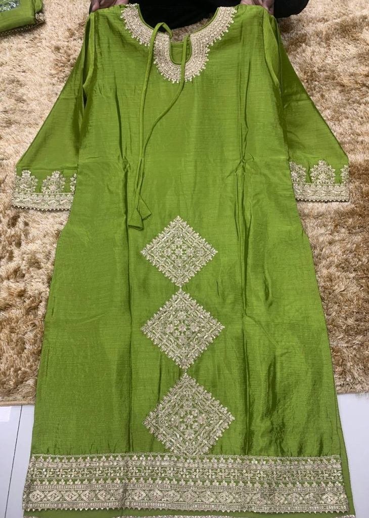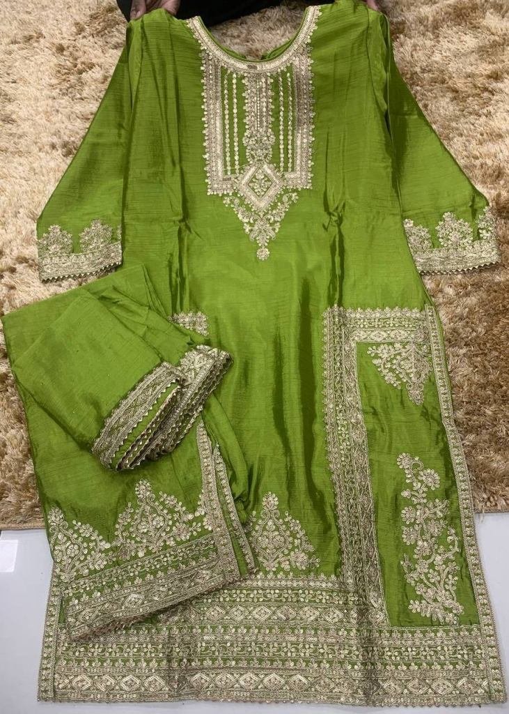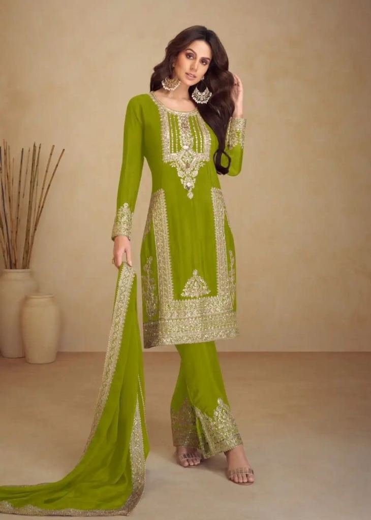 Gulkayra Designer Apsara Salwar Suit Readymade Heavy Chinon with Embroidery Multi And 3mm Mat Sequence Green Color DN 7473