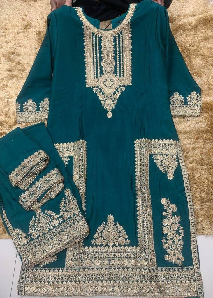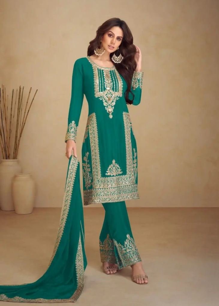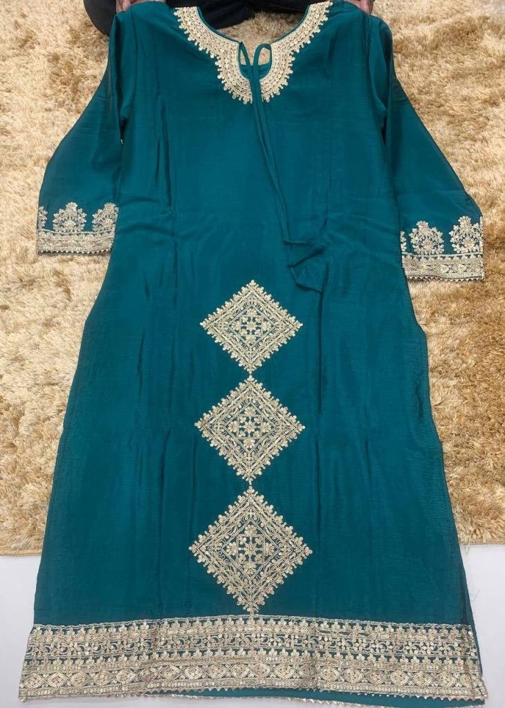 | NAME : | Gulkayra Designer Apsara Salwar Suit Readymade Heavy Chinon with Embroidery Multi And 3mm Mat Sequence Teal Color DN 7473 |