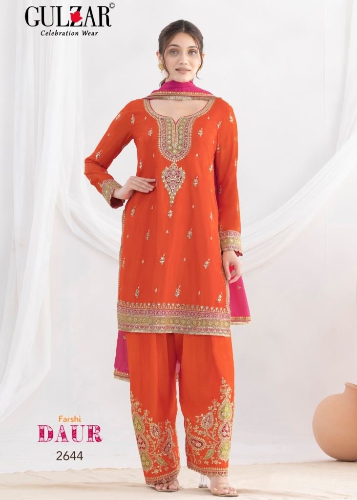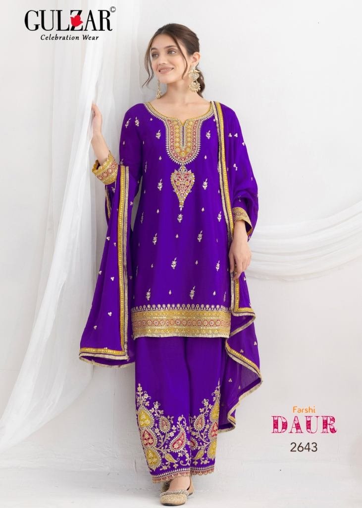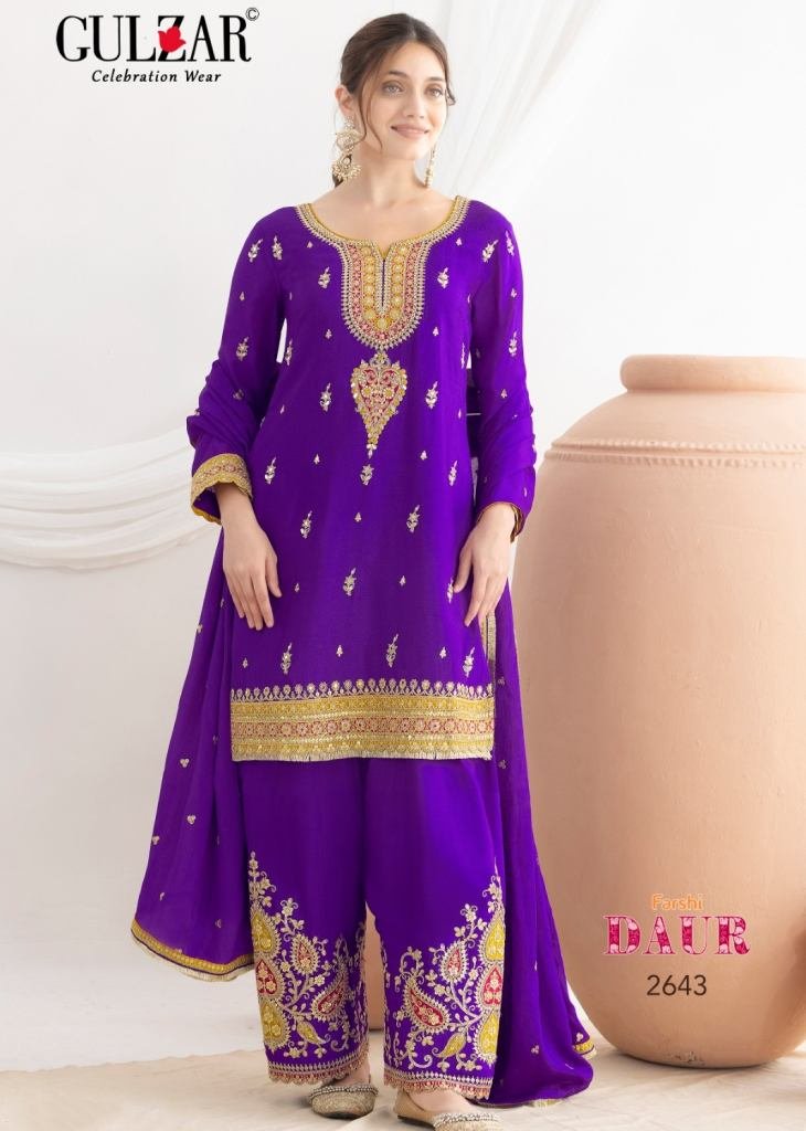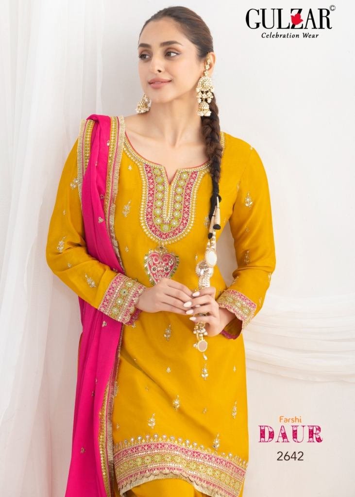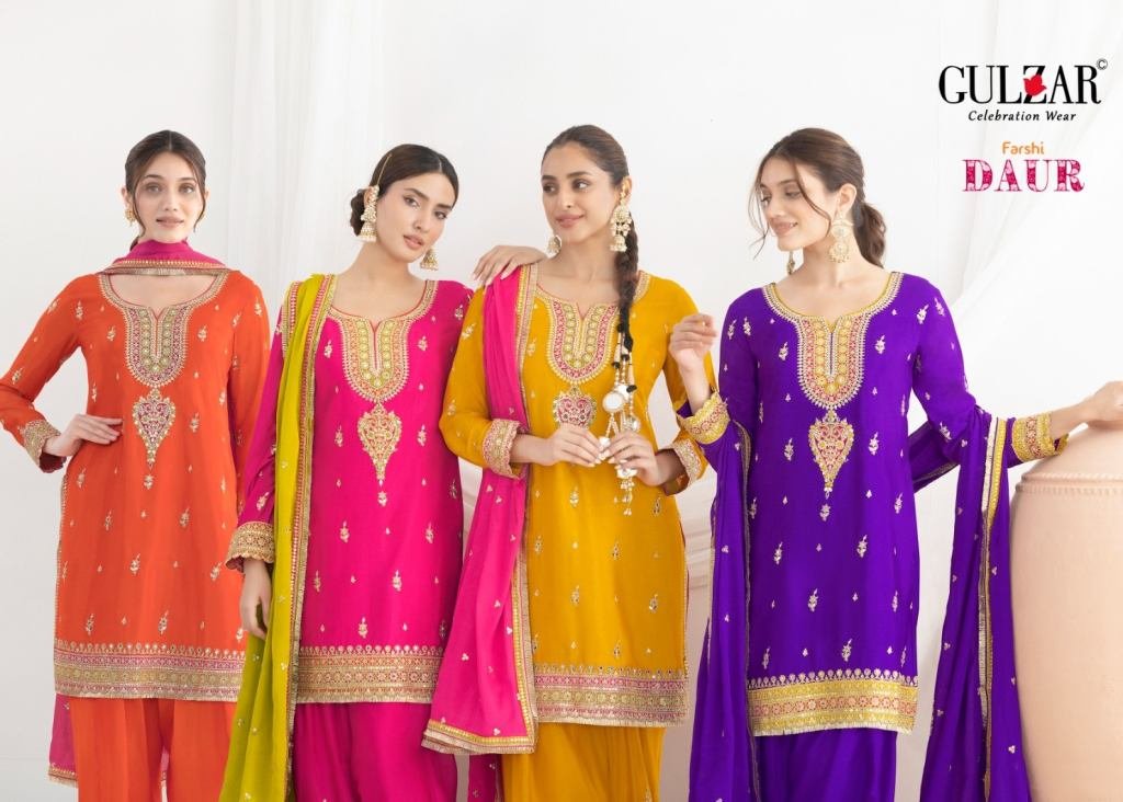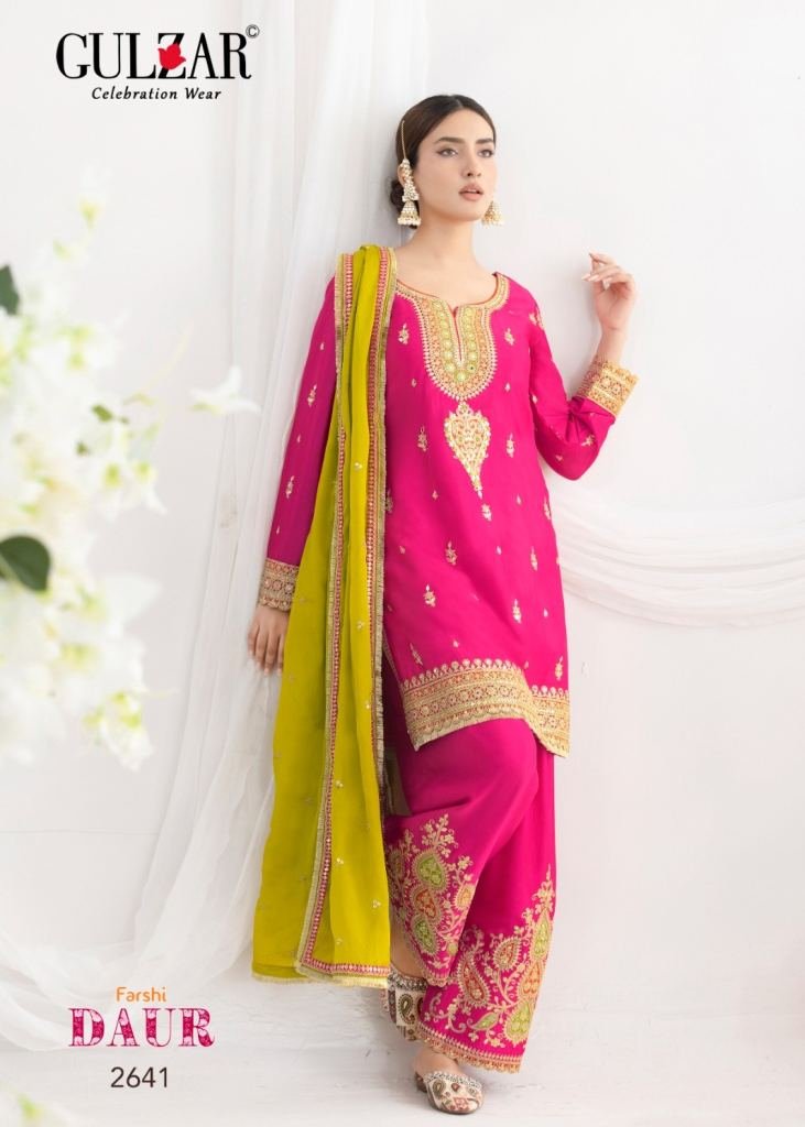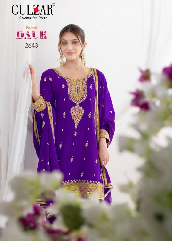 Gulzar Daur Salwar Kameez Premium Chinnon Fabric With Beautiful Embroidery Work Suit DN 2641 To 2644