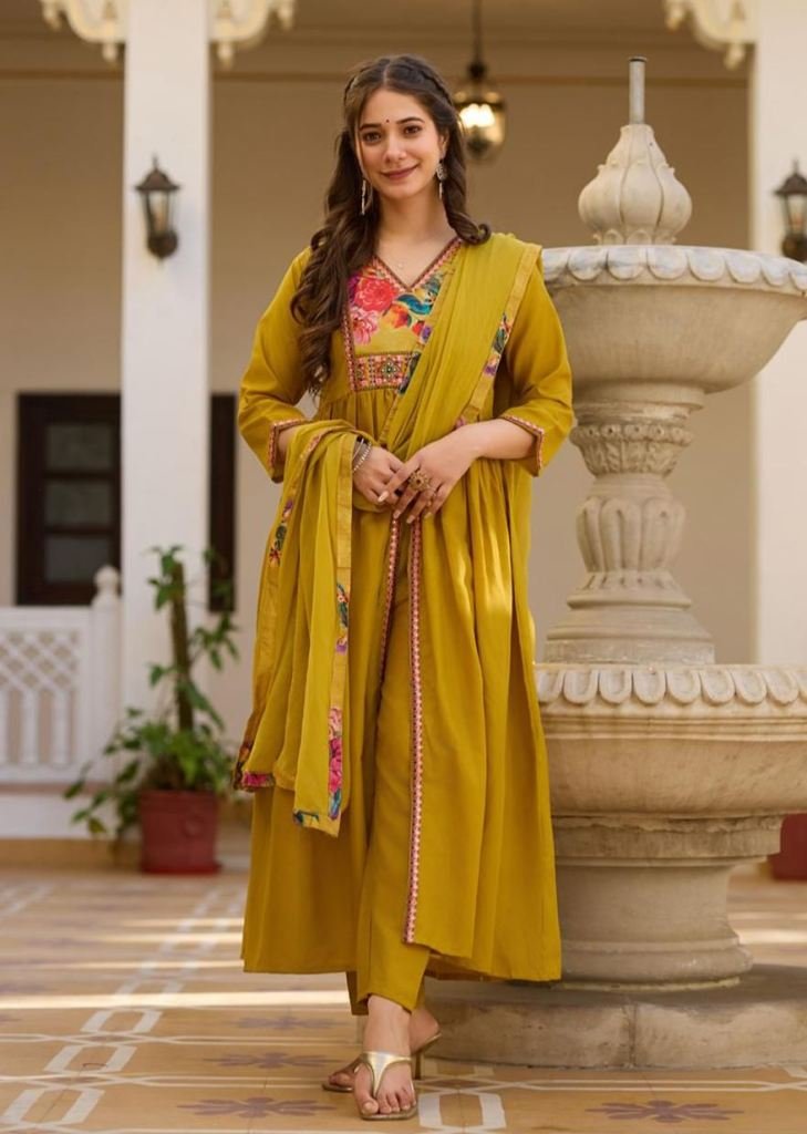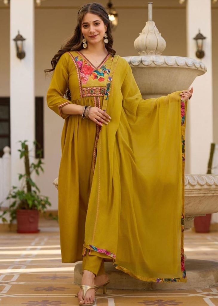| NAME : | Kameli Women Embroidery Straight Kurta Pant With Dupatta With Embroidery Work Yellow Color |