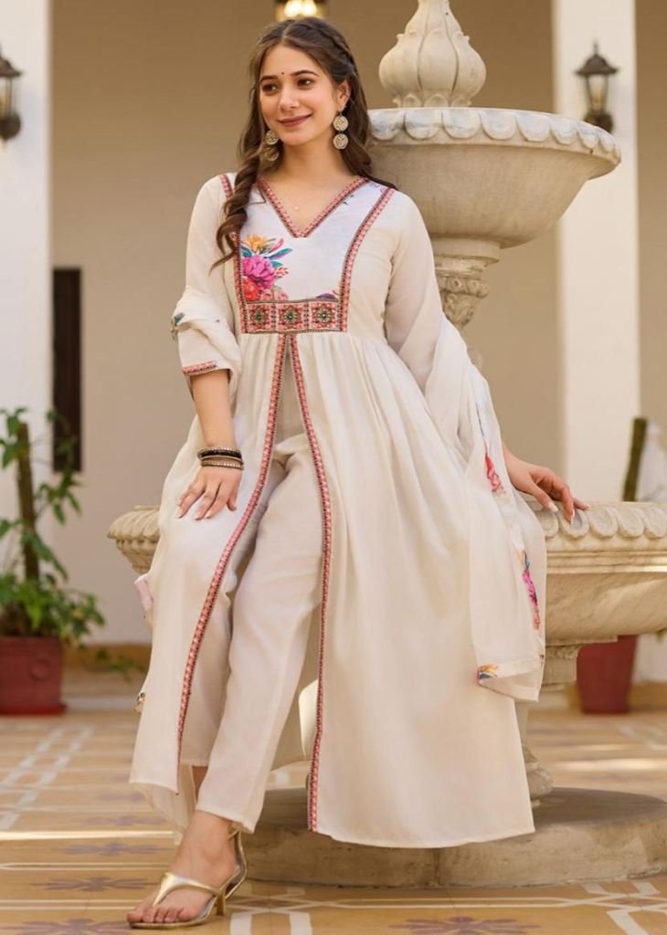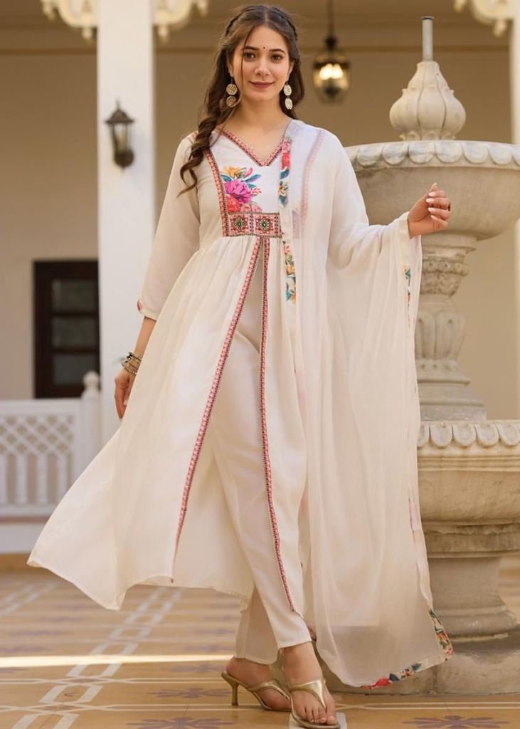 | NAME : | Kameli Women Embroidery Straight Kurta Pant With Dupatta With Embroidery Work Off White Color |