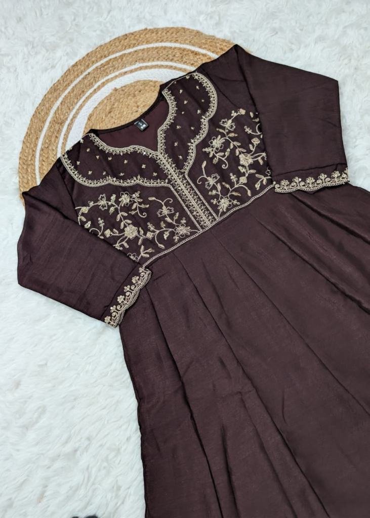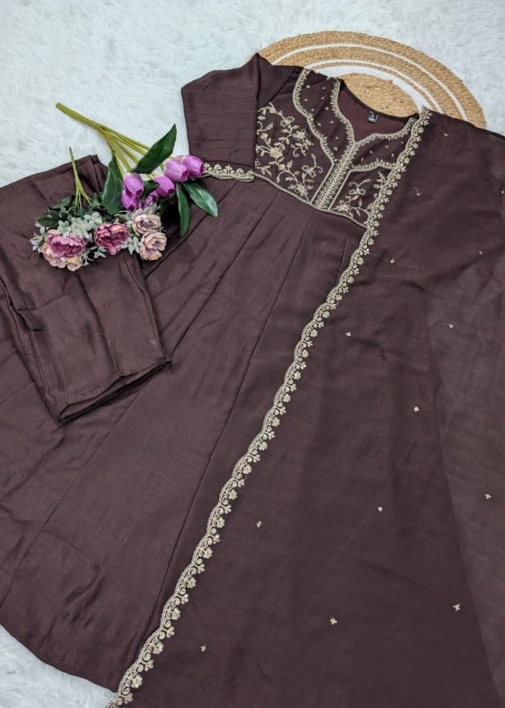 | NAME : | Kanika Designer 3 piece Kurta Set Vichitra Silk With Embroidery Sequence Work Brown Color |