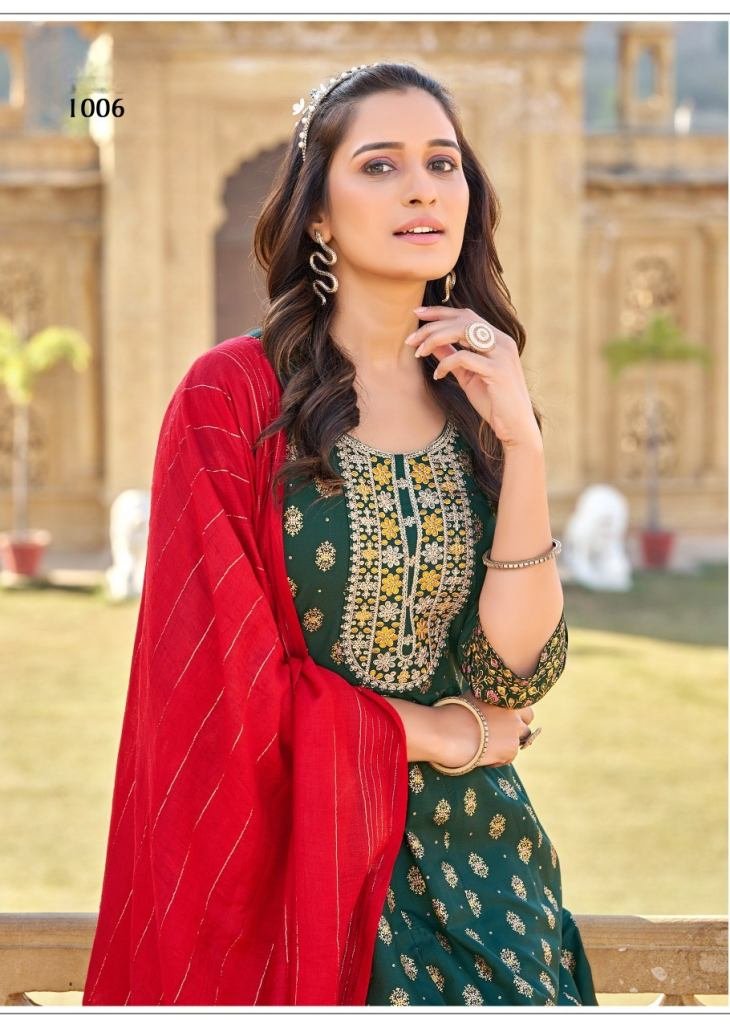 | NAME : | Kanika In 14Kg Rayon Fabric 3 Piece Anarkali Kurti Set With Pant And Dupatta Green Color DN 1005 |