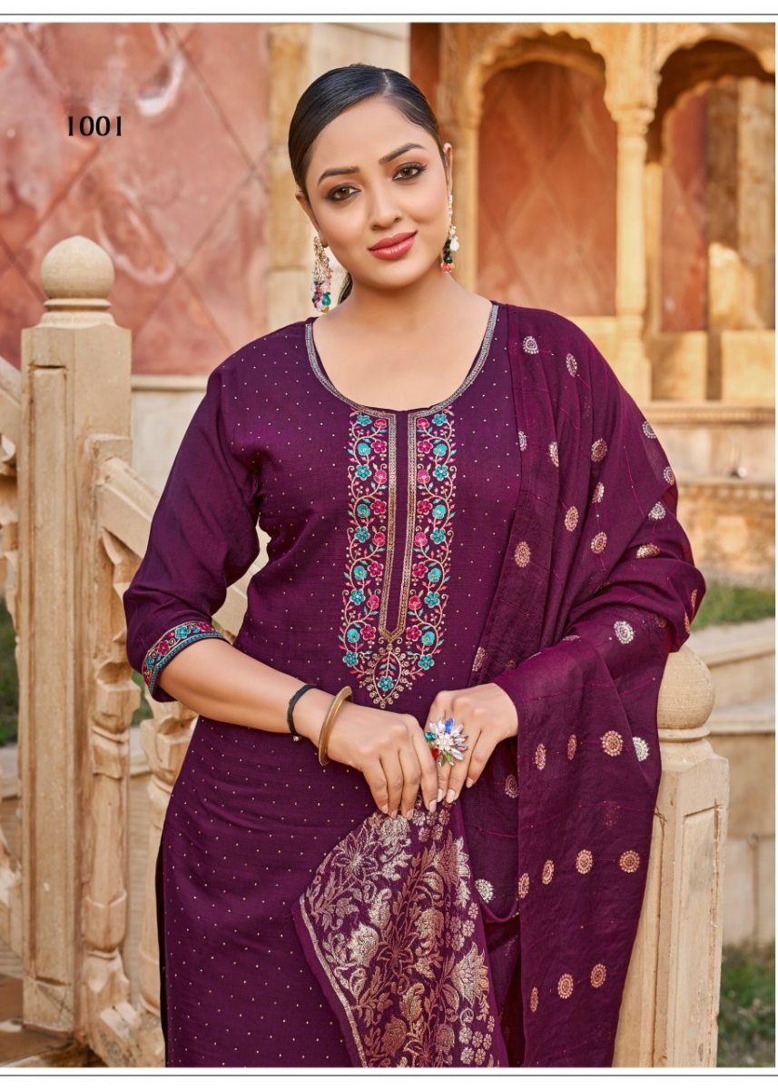 | NAME : | Karissa DN 1001 Designer Vertical Silk 3 Piece Kurti Pant Dupatta Set With Embroidery Sequence And Zarkan Work In Burgundy Color |