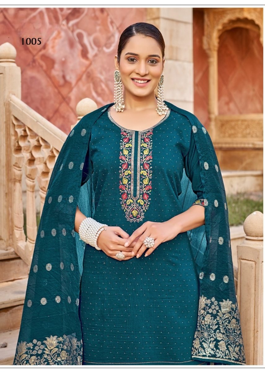 | NAME : | Karissa DN 1005 Designer Vertical Silk 3 Piece Kurti Pant Dupatta Set With Embroidery Sequence And Zarkan Work In Teal Blue Color |