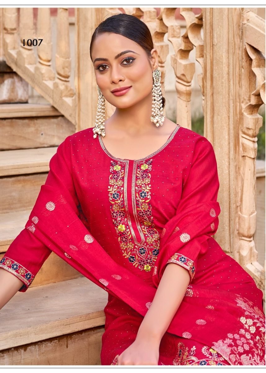 | NAME : | Karissa DN 1007 Designer Vertical Silk 3 Piece Kurti Pant Dupatta Set With Embroidery Sequence And Zarkan Work In Pink Color |