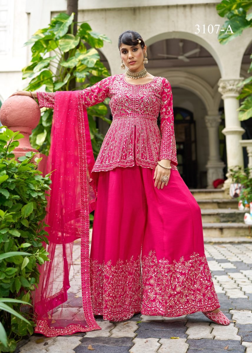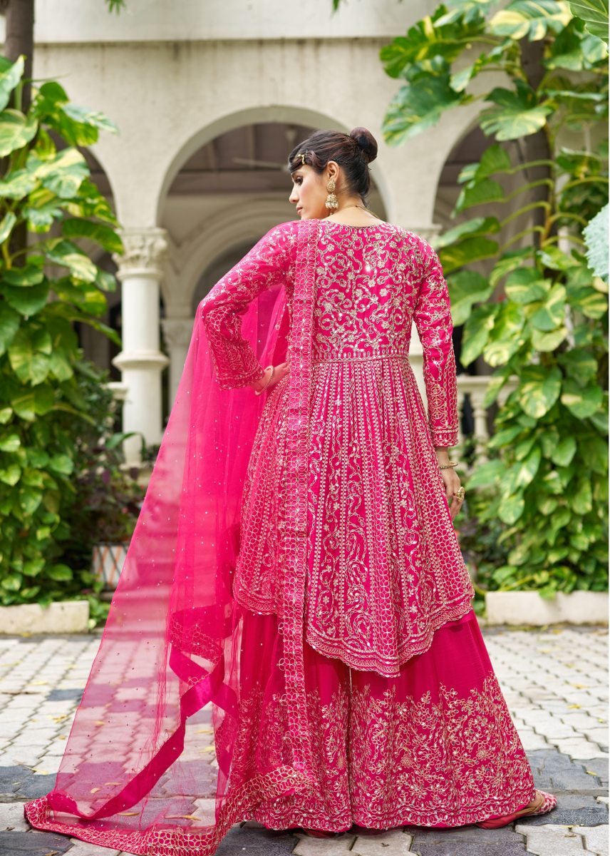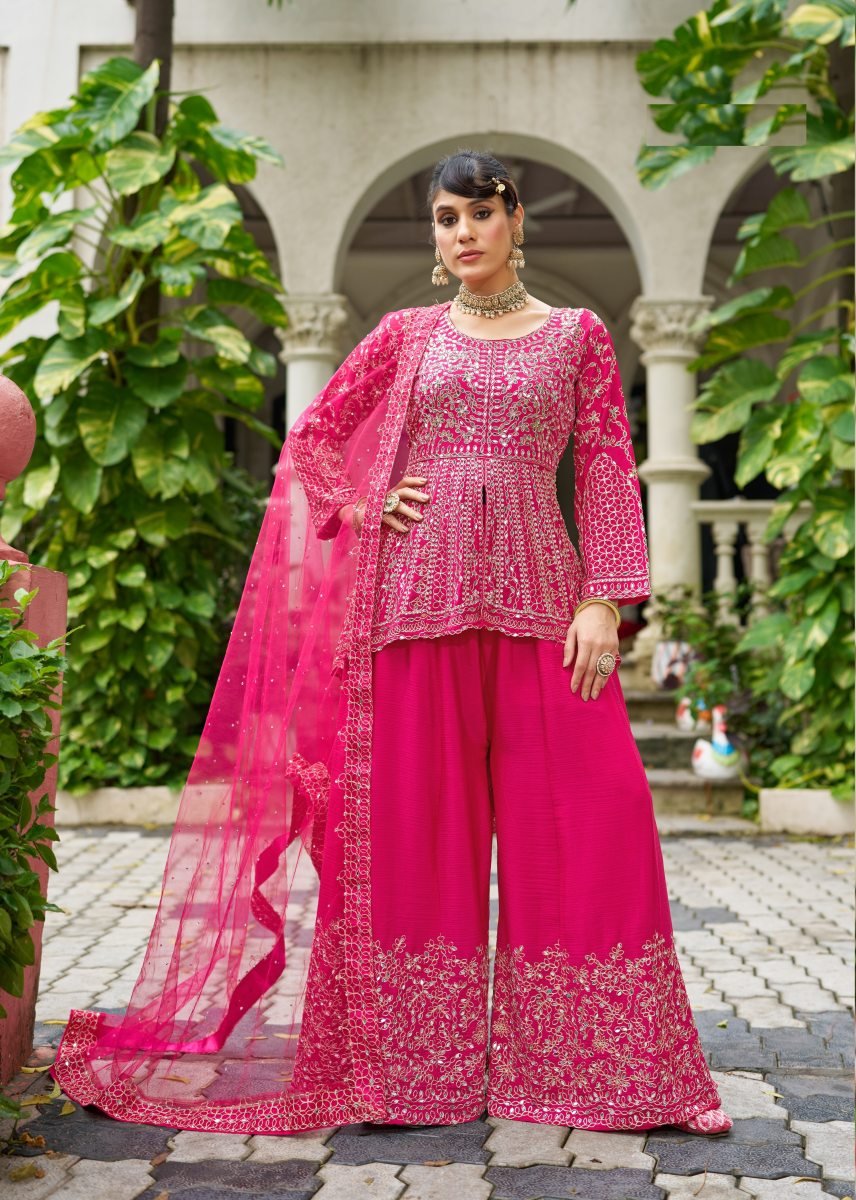 | NAME : | LFH SN DN 3107 Chinon With Beautiful Real Mirror Embroidery Work Sharara Suit Set Pink Color |