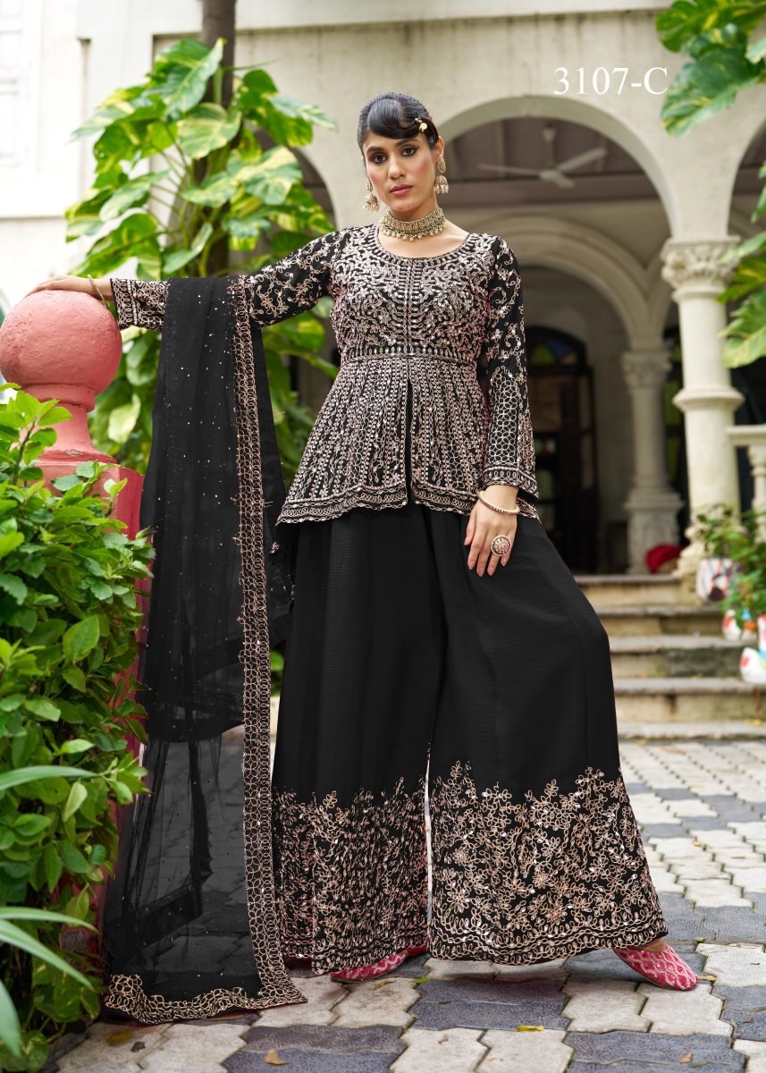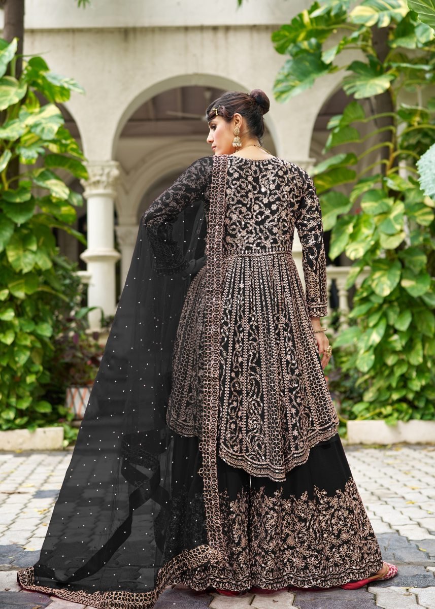 | NAME : | LFH SN DN 3107 Chinon With Beautiful Real Mirror Embroidery Work Sharara Suit Set Black Color |