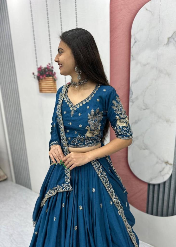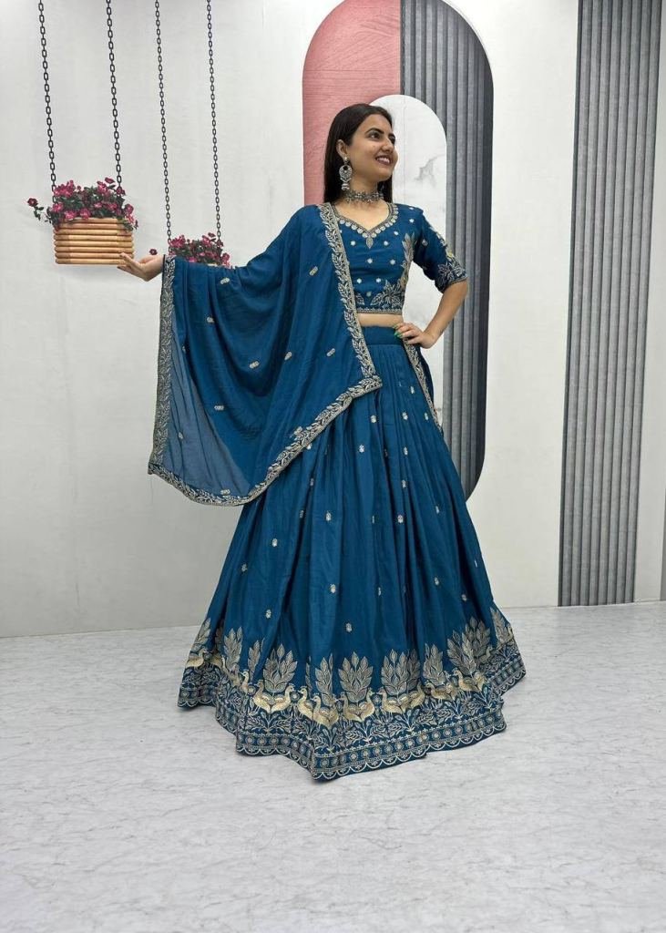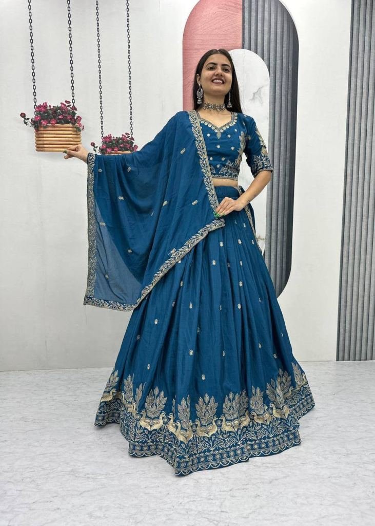 | NAME : | LFH TP Festival Designer Chinon Heavy Embroidery And Thread Work Lehenga Choli Blue Color DN 293 |