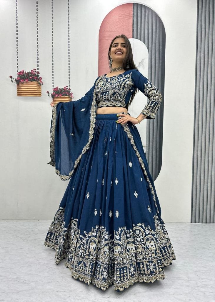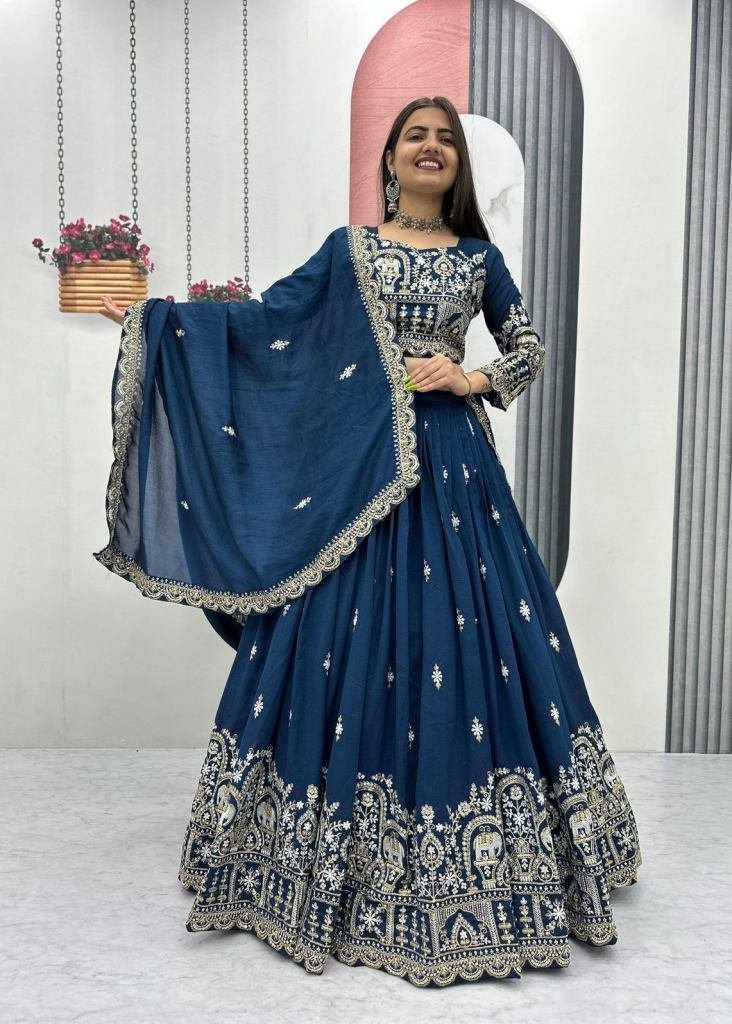 | NAME : | LFH TP Festival Designer Premium Vichitra Silk Heavy Embroidery And Sequence Work Lehenga Choli Blue Color DN 296 |