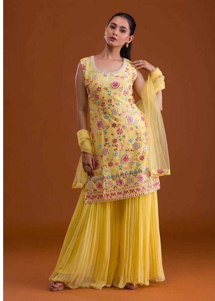 | SKU : | Sharara Suit Yellow Color DN 1004 |