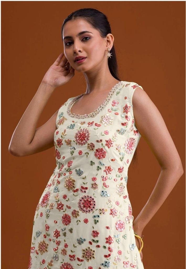 | NAME : | Latest Wedding Collection Faux Georgette With Heavy Embroidered And Multi Thread Work Sharara Suit White Color DN 1004 |