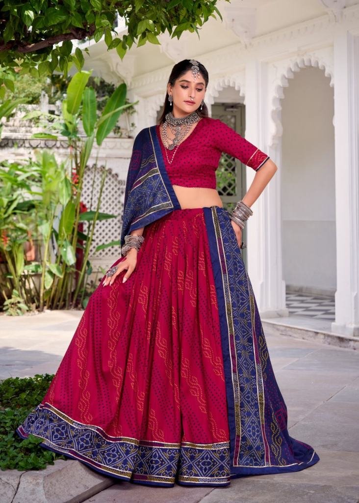 | NAME : | Lfh Lnb Classic Tussar Silk Bandhej Lehenga Choli Enhanced With Gotta Patti Lace Magenta Color DN 1250 |