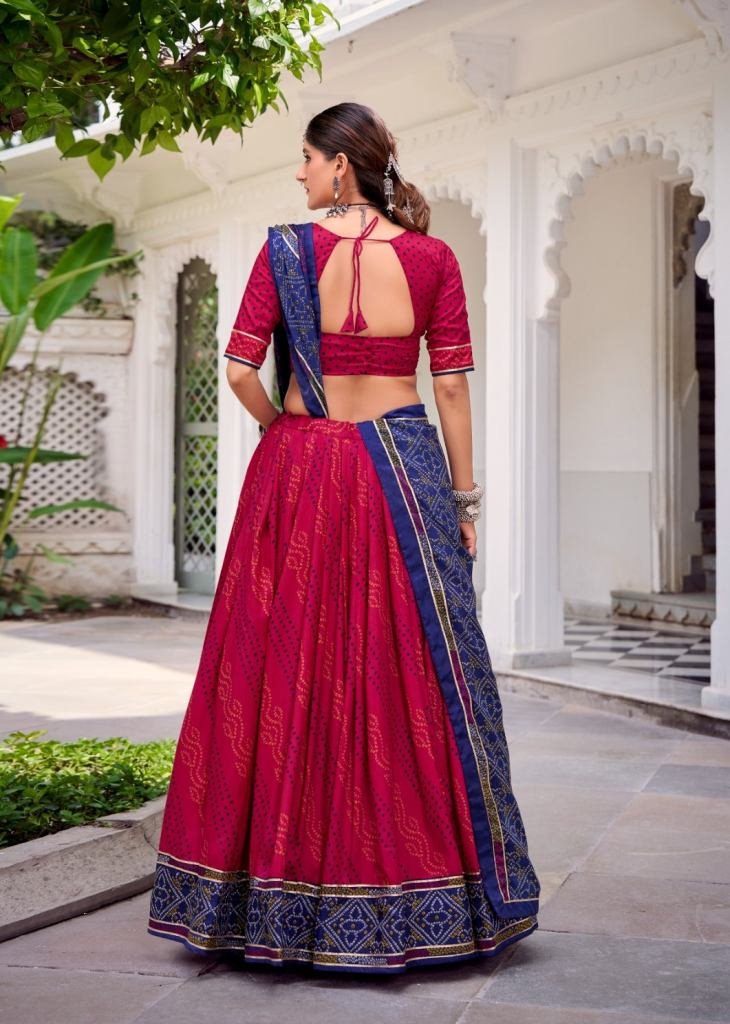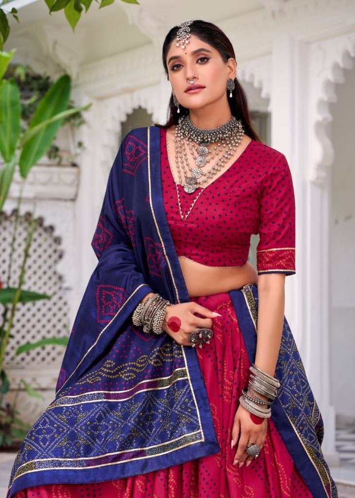 Lfh Lnb Classic Tussar Silk Bandhej Lehenga Choli Enhanced With Gotta Patti Lace Magenta Color DN 1250