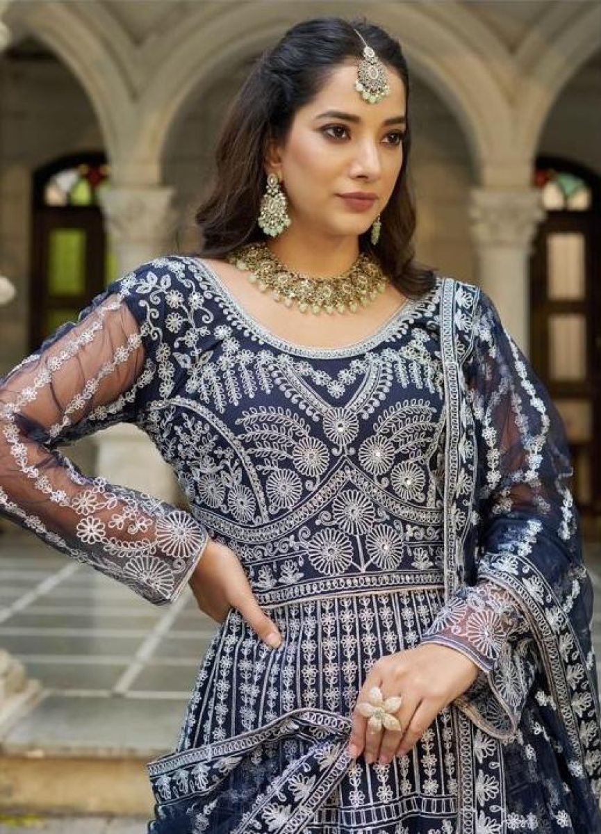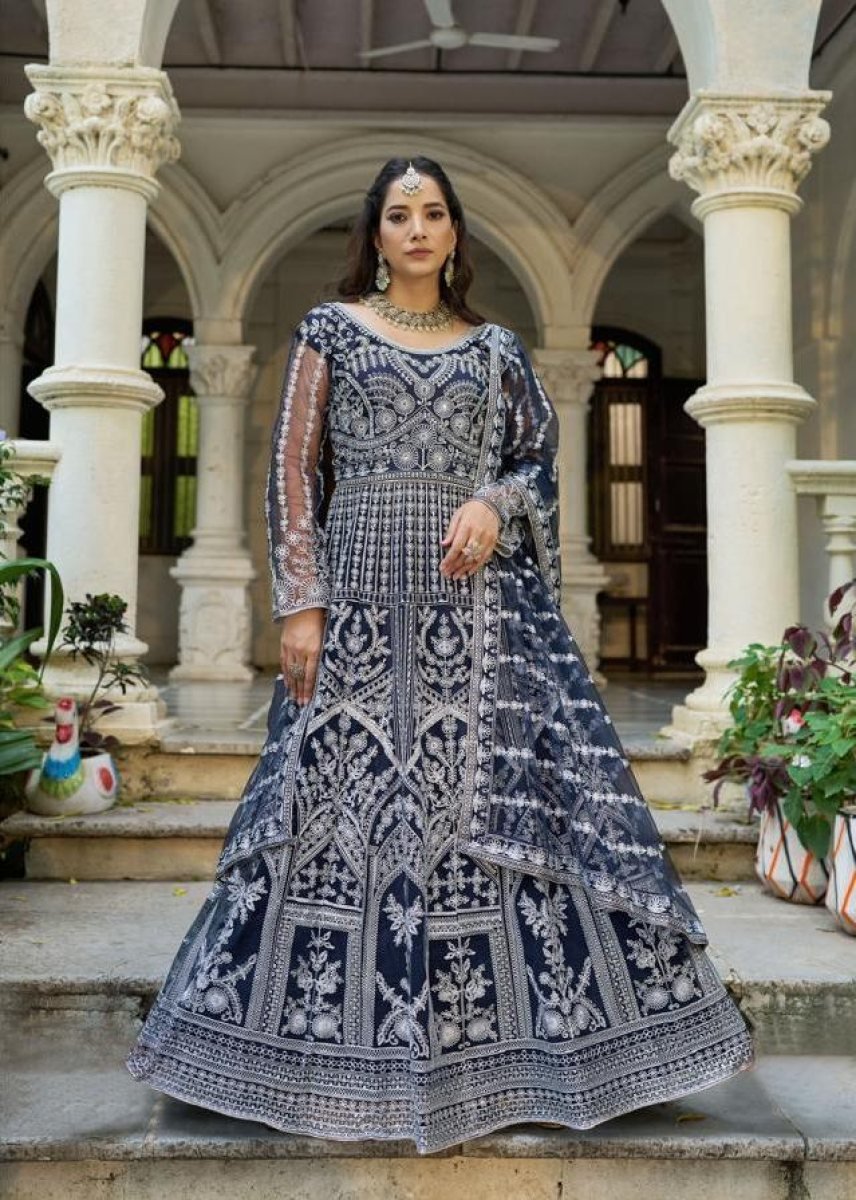 | NAME : | Lfh SN DN 3105 Pure Butterfly Net With Embroidery Work Anarkali Gown Nevy Blue Color |