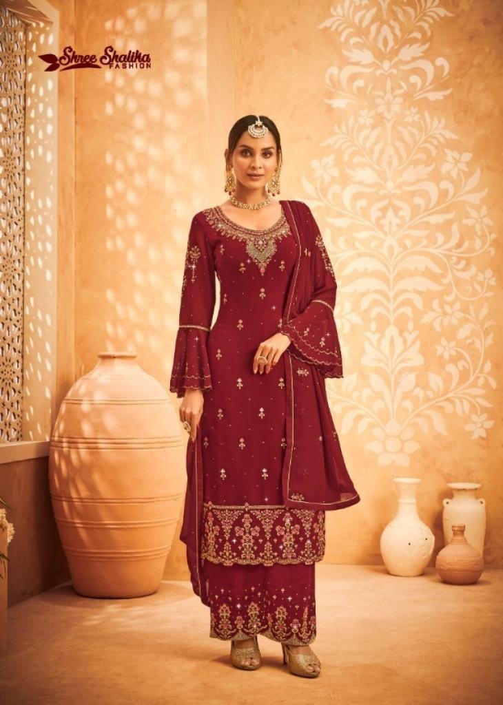 NAME : | Lt Nitya Designer Heavy Faux Georgette With Embroidered Palazzo Suit Red Color DN 3002 |