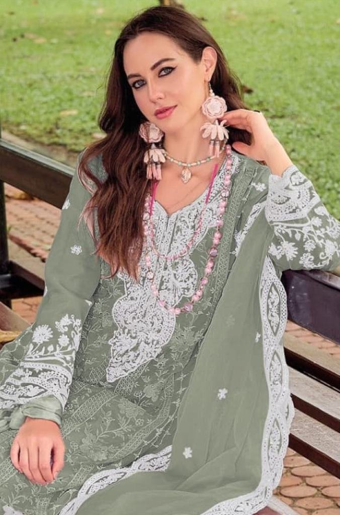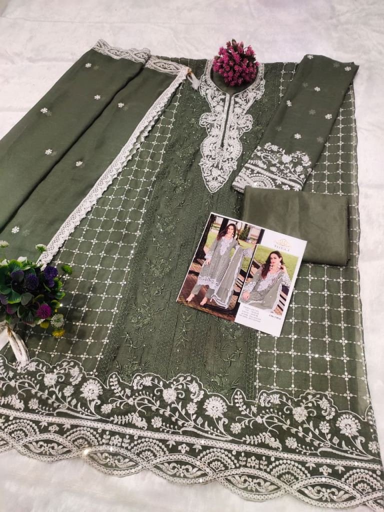 | NAME : | Maaria A Crunchy With Embroidery Sequence Work With Zarkan Work Pakistani Suit Sage Green Color DN 1199 |