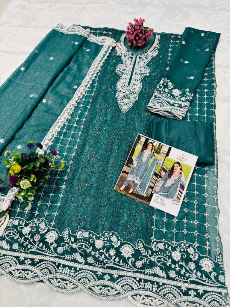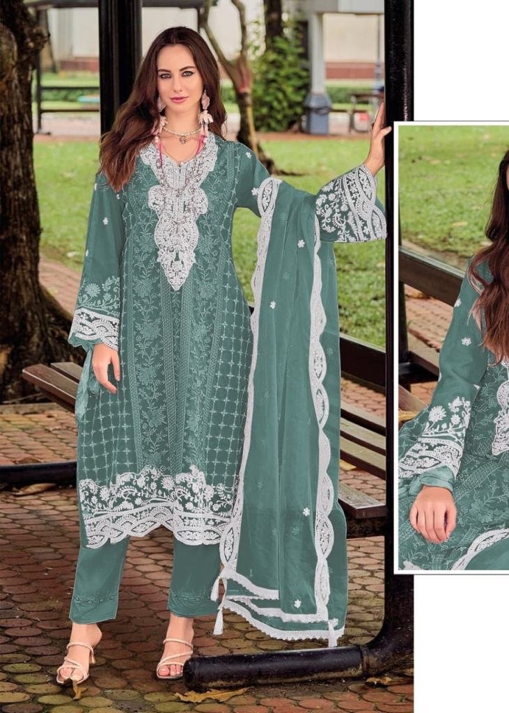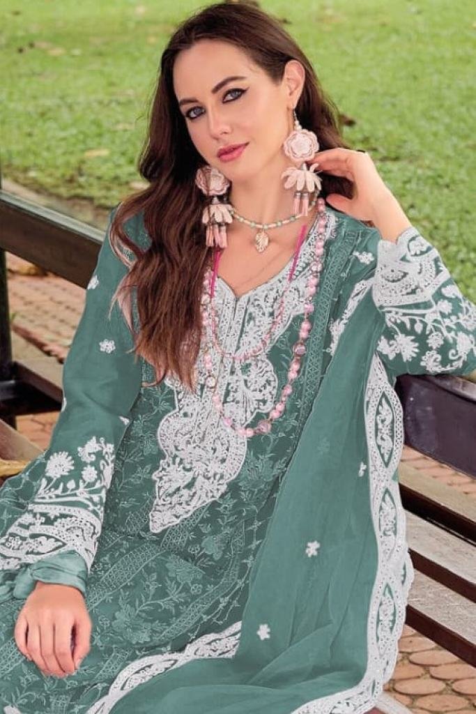 Maaria A Crunchy With Embroidery Sequence Work With Zarkan Work Pakistani Suit Dusty Green Color DN 1199