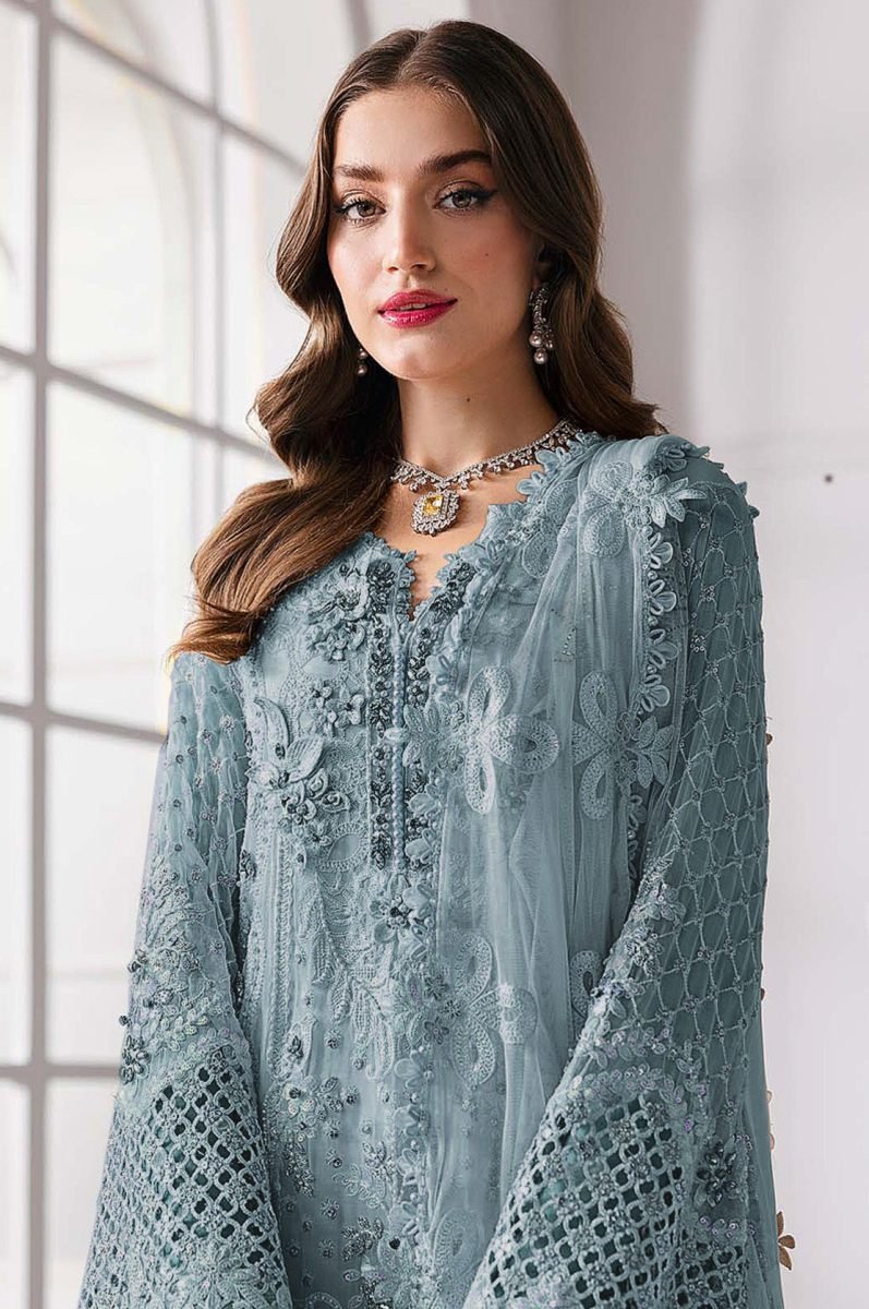 | NAME : | Maaria A DN 1200 Pakistani Suit In Heavy Faux Georgette With Embroidery Sequence And Khatli Work Light Blue Color |