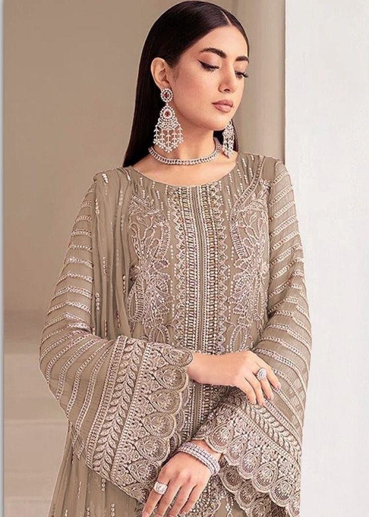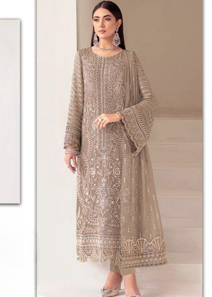 Maaria A Designer Pakistani Kurta Set Heavy Faux Georgette With Embroidery Sequence Work And Khatli Work Light Brown Color DN 185