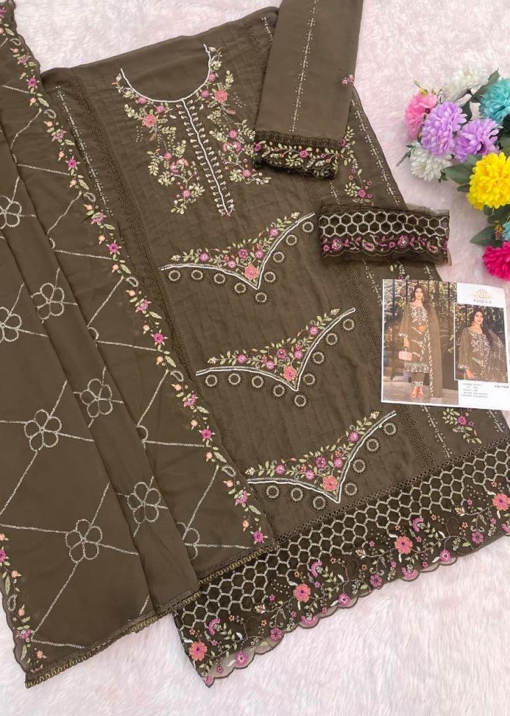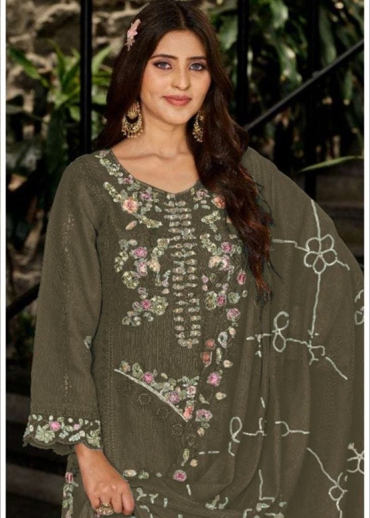 Maaria A Designer Pakistani Kurta set Heavy Faux Georgette With Embroidery Sequence Work And Khatli Work Olive Green Color DN 1196