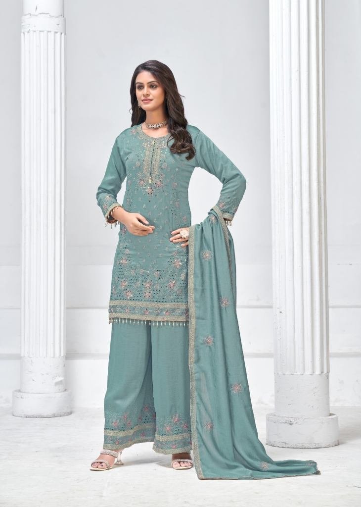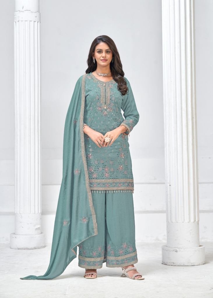 | NAME : | Maaria A Designer Premium Heavy Vichitra Embroidery Sequence Work With Zarkan Work Pakistani Suit Light Teal Color DN 1186 |