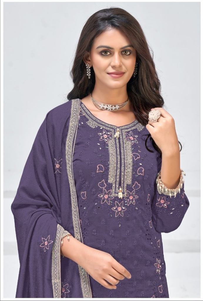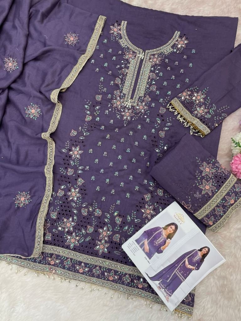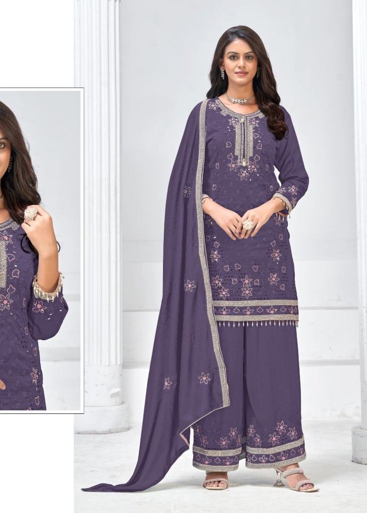 | NAME : | Maaria A Designer Premium Heavy Vichitra Embroidery Sequence Work With Zarkan Work Pakistani Suit Violet Color DN 1186 |