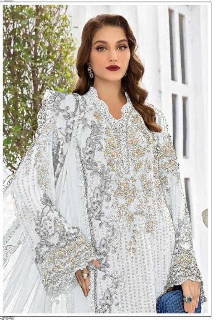 | NAME : | Maaria A Heavy Faux Georgette Embroidery Sequence Work Khatli Work Real Mirror And Zarkan Pakistani Suit White Color DN 1189 |