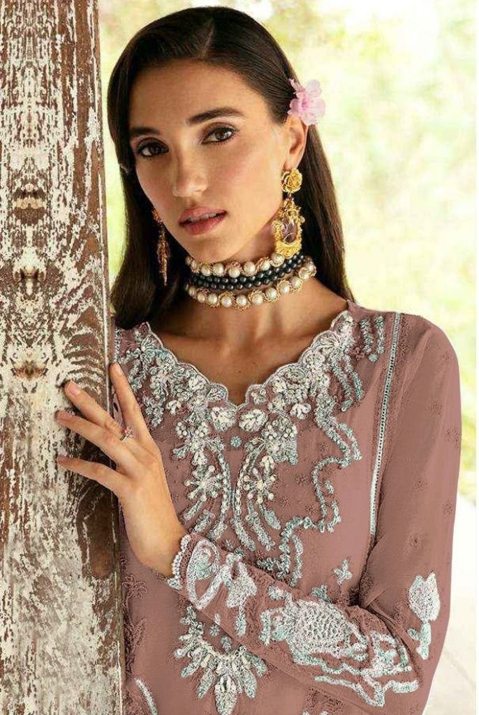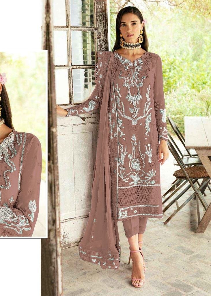NAME : | Maaria A Heavy Fox Georgette With Embroidery Sequence Work With Real Mirror & Stone Work Pakistani Suit Brown Color DN 1165 |